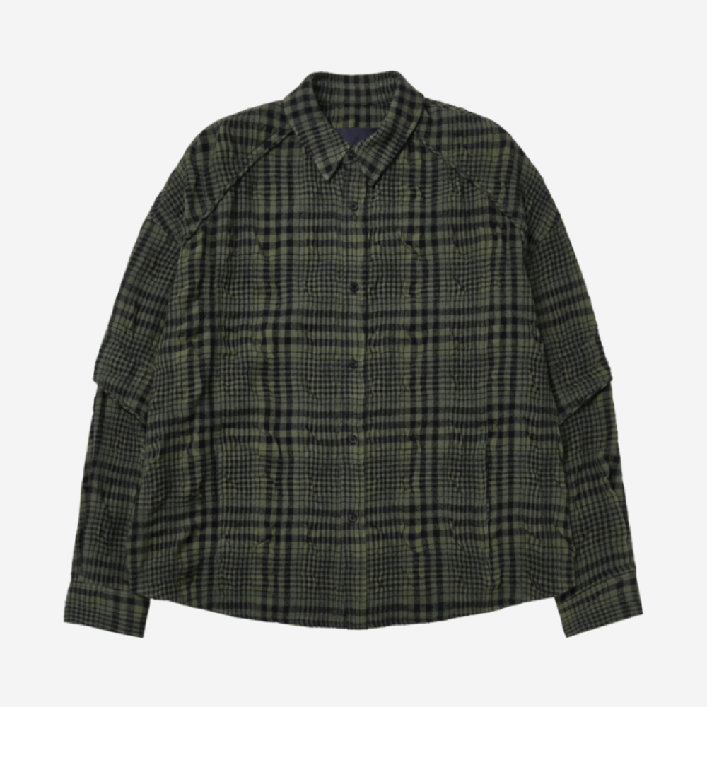 Juun.J Wool Cotton Washing Check Dual Sleeve Shirt Khaki - 24FW