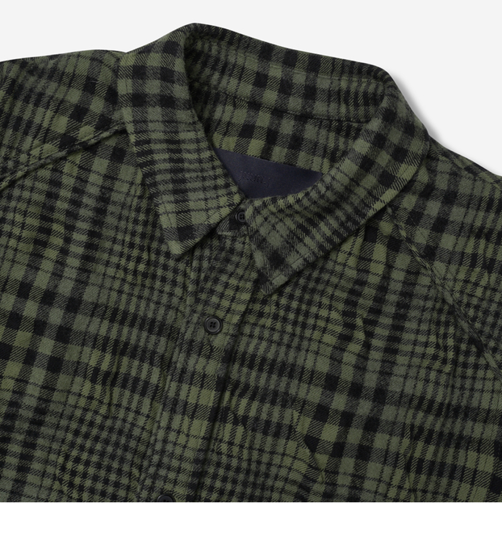 준지 울 코튼 워싱 체크 듀얼 슬리브 셔츠 카키 - 24FW