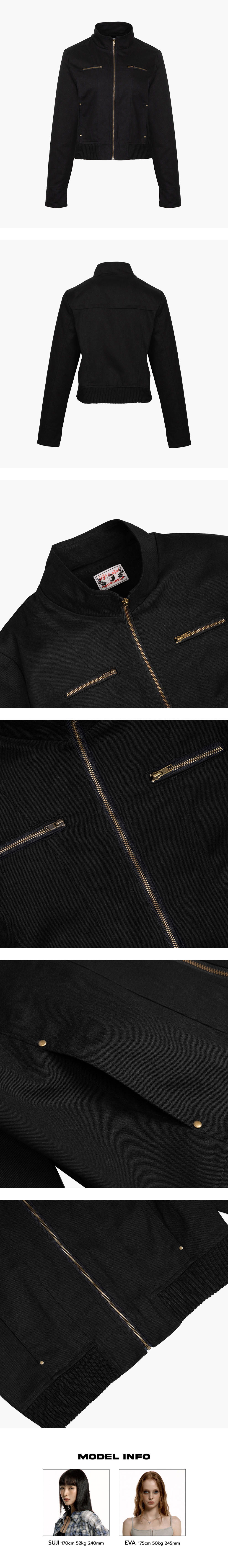 빈티지한 감성의 코튼 자켓입니다. 앤틱 컬러의 지퍼를 사용하여 Y2K 감성을 더했으며 베이직한 디자인으로 어떤 옷에 착용하여도 매치가 가능한 활용도 높은 제품입니다. - Cotton 100% - Model Info : Eva 175cm 50kg - Fitting size : S