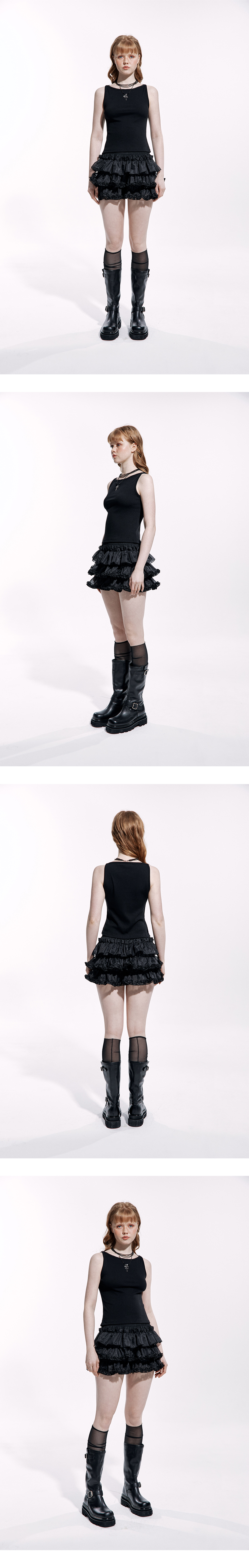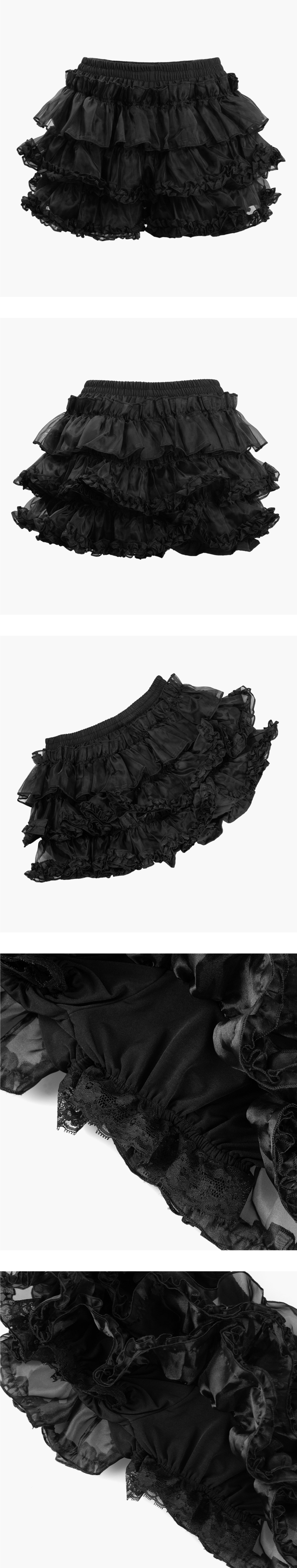 가볍고 포슬거리는 소재를 겹겹히 쌓아 올려 더 풍성하고 귀여운 실루엣을 연출했습니다. 셔링 디테일이 돋보이는 봉재법을 사용하였습니다. 치마 바지 형식으로 안에 바지가 있기때문에 착용감이 무척 편합니다. 허리와 바지 밑단은 신축성 좋은 밴딩으로 되어있어 사이즈의 유동성은 물론 어떤 체형이 입어도 귀여운 코디를 완성할 수 있습니다. *Model size : 167cm 48kg 착용사이즈 : Free size *Material : Polyester 100%