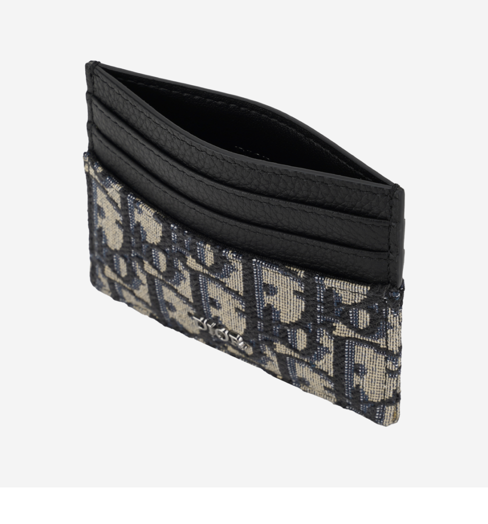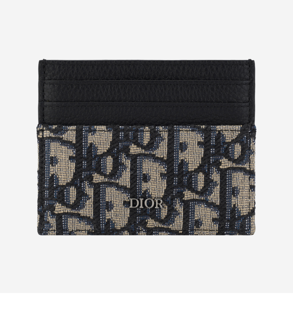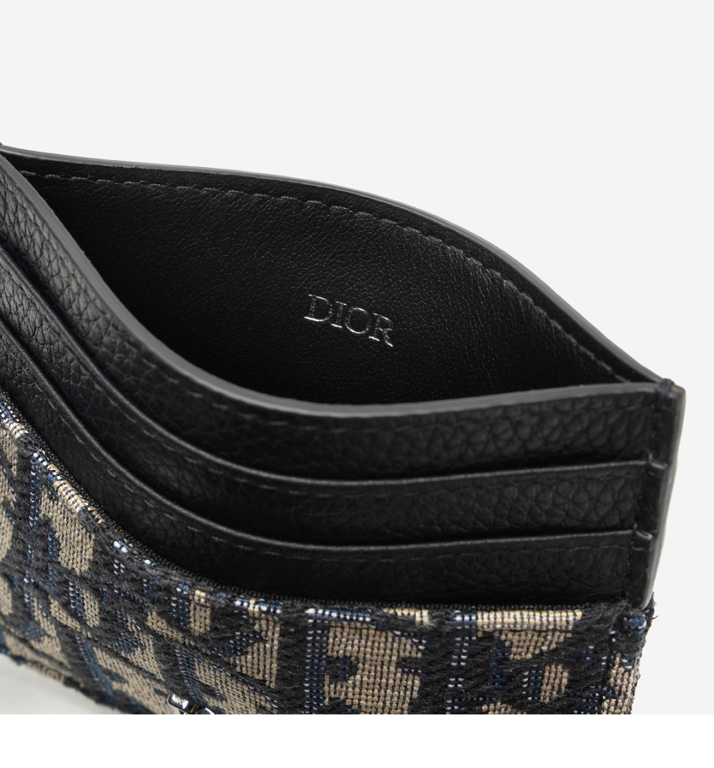 디올 카드 홀더 베이지 & 블랙 디올 오블리크 자카드