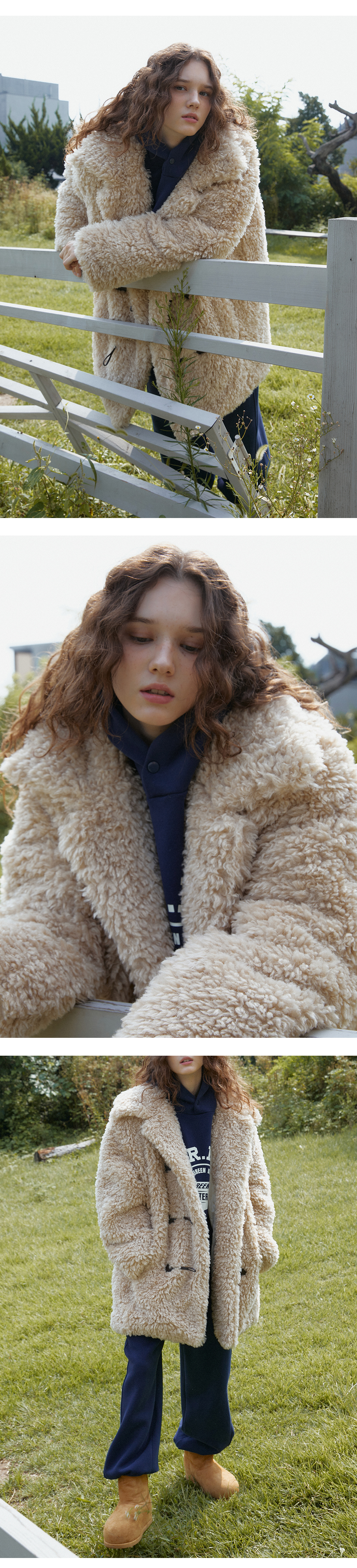 그린버터 시어링 더플 하프 코트 라이트 베이지