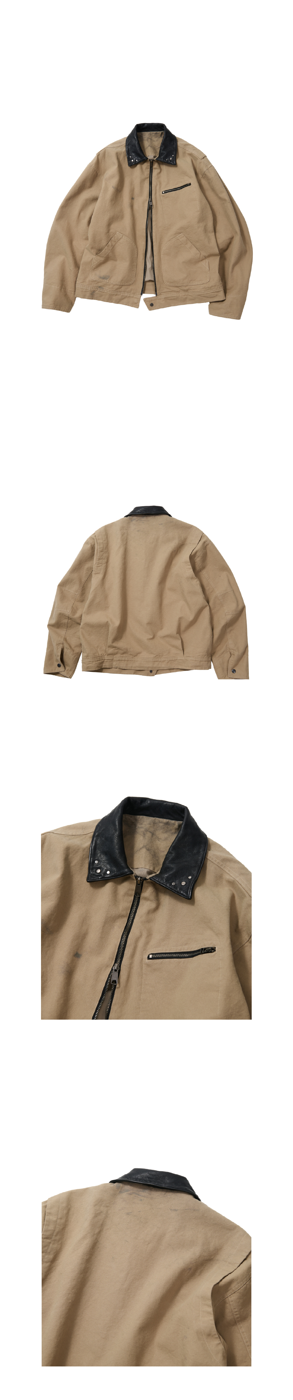 이티씨이 빈티지 레더 카라 워크 자켓 베이지