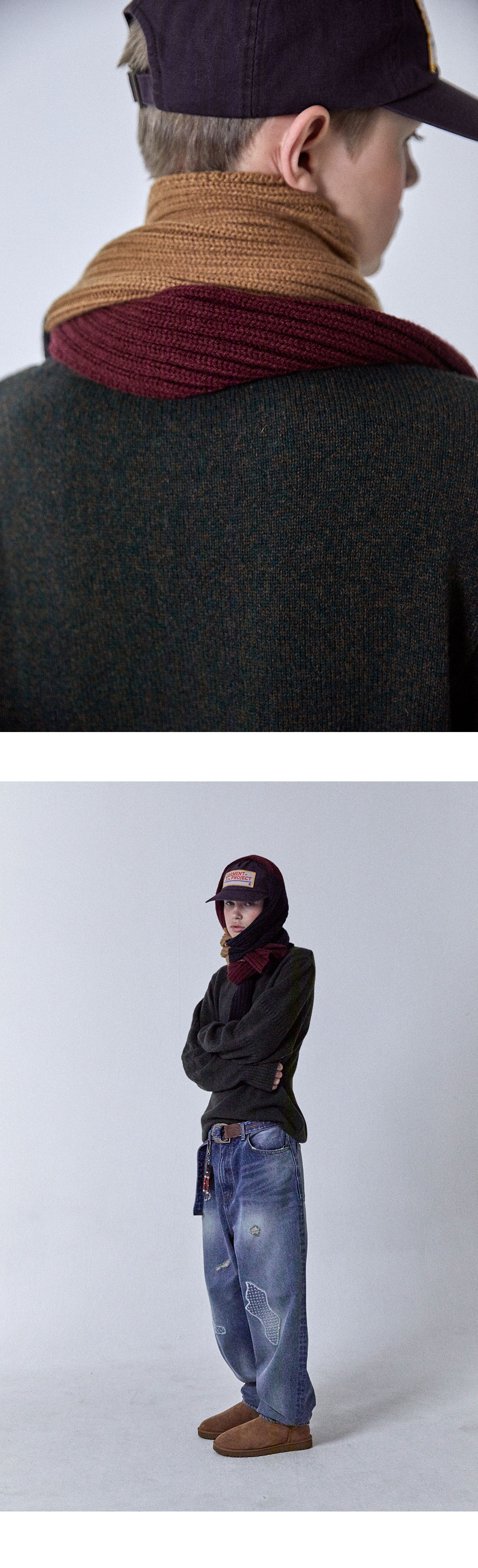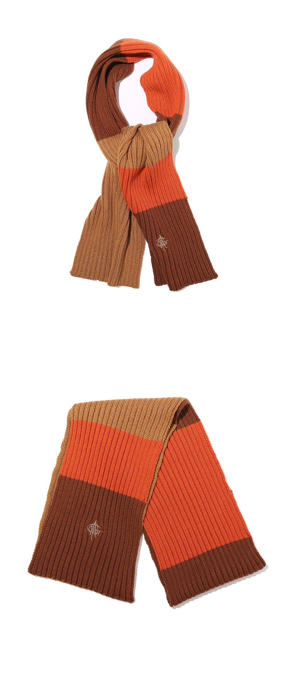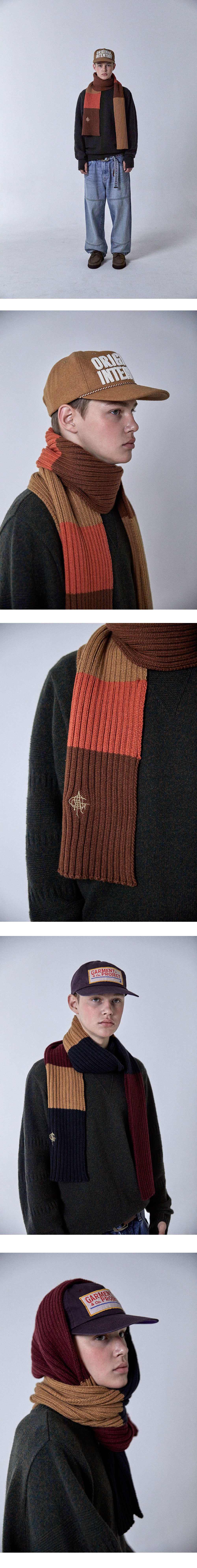 오가프 스트라이프 니트 머플러 브라운