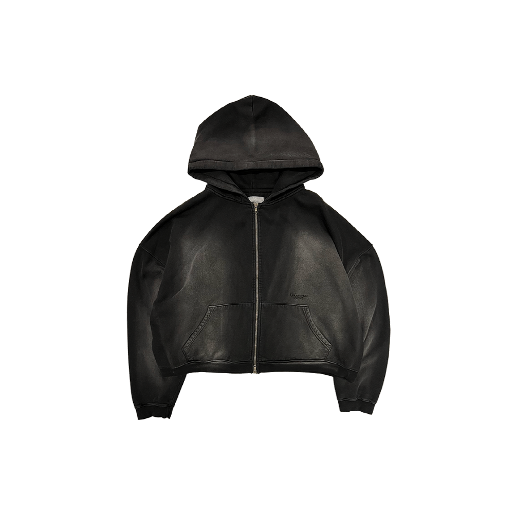 Undermycar Mu.69 Anti Fxxking Logo Play Vintage Brush Washed Hood ZipUp Black