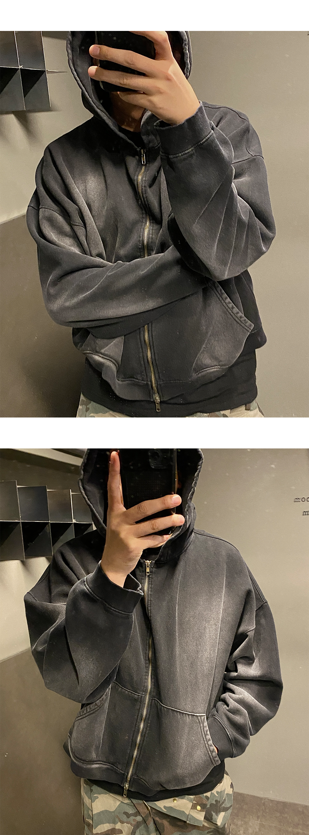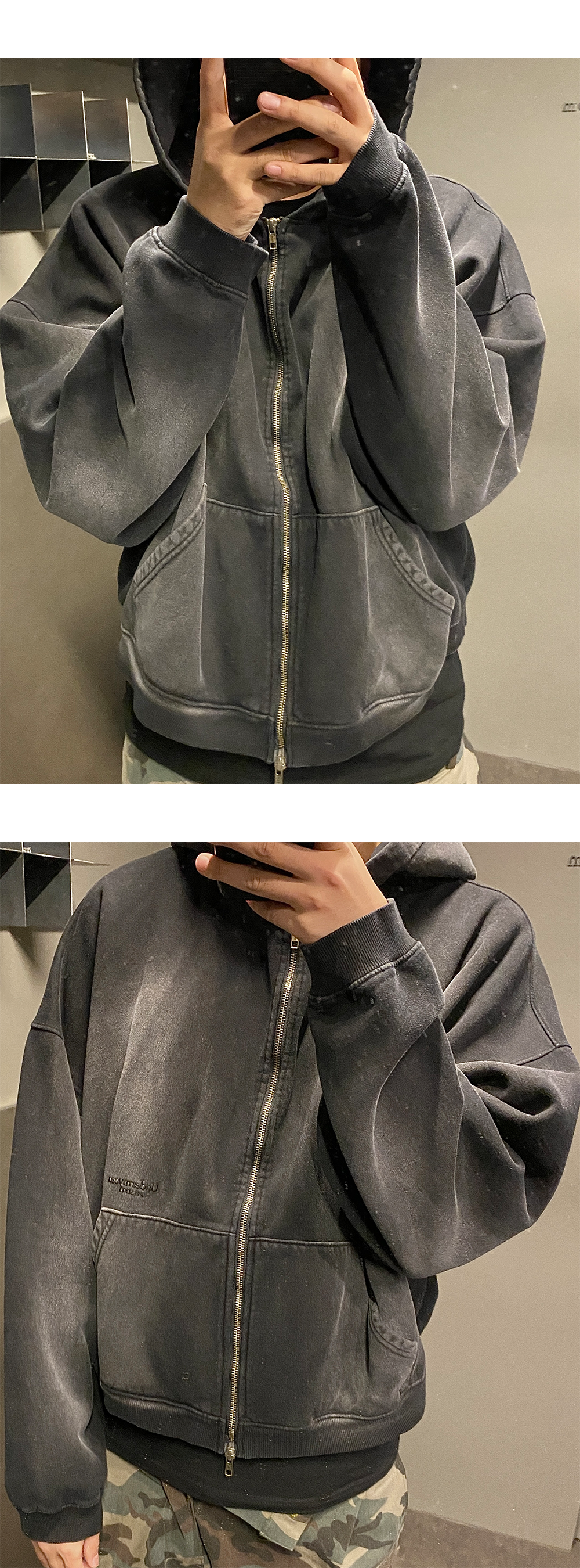 언더마이카 무.69 안티 Fxxking 로고플레이 빈티지 브러쉬 워시드 후드 집업