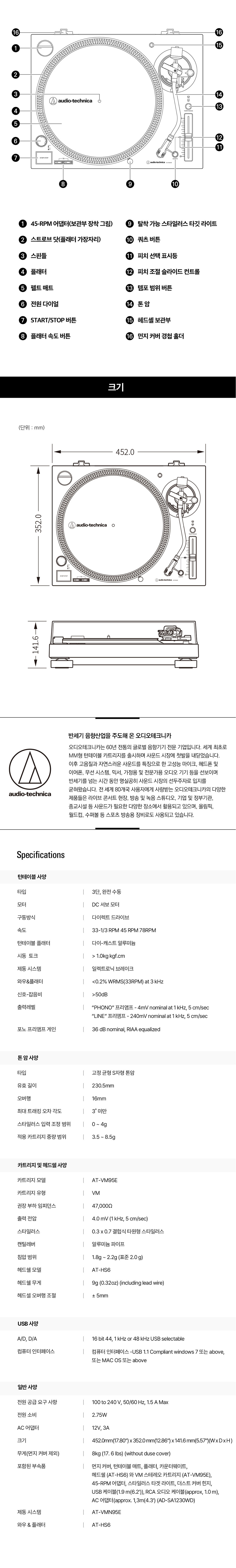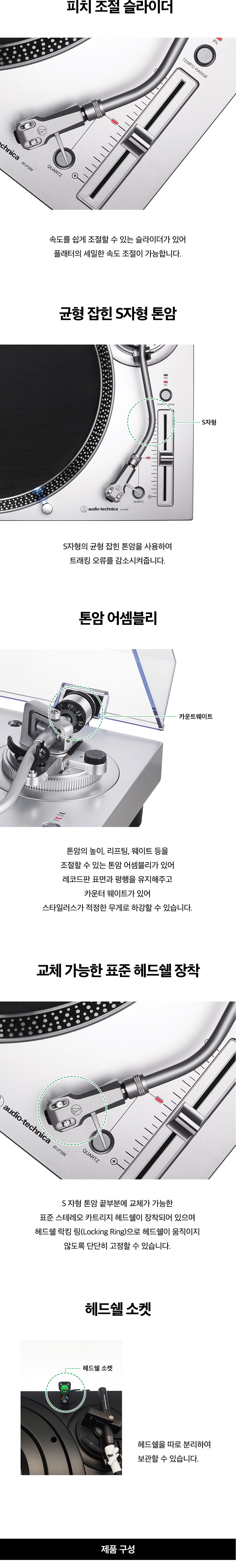 오디오테크니카 AT-LP120XUSB 전문가용 다이렉트 드라이브 USB 턴테이블 실버
