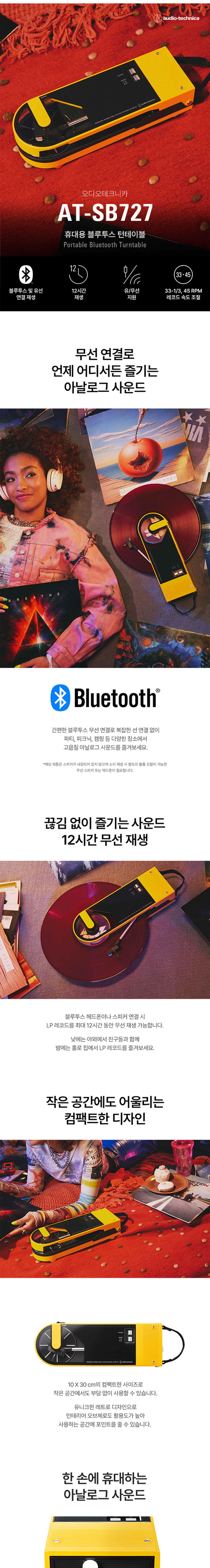 오디오테크니카 AT-SB727 휴대용 무선 블루투스 턴테이블 옐로우