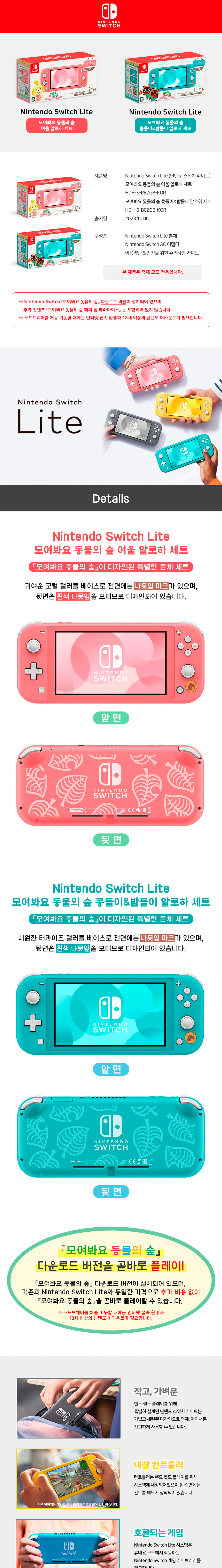 닌텐도 스위치 라이트 모여봐요 동물의 숲 알로하 세트