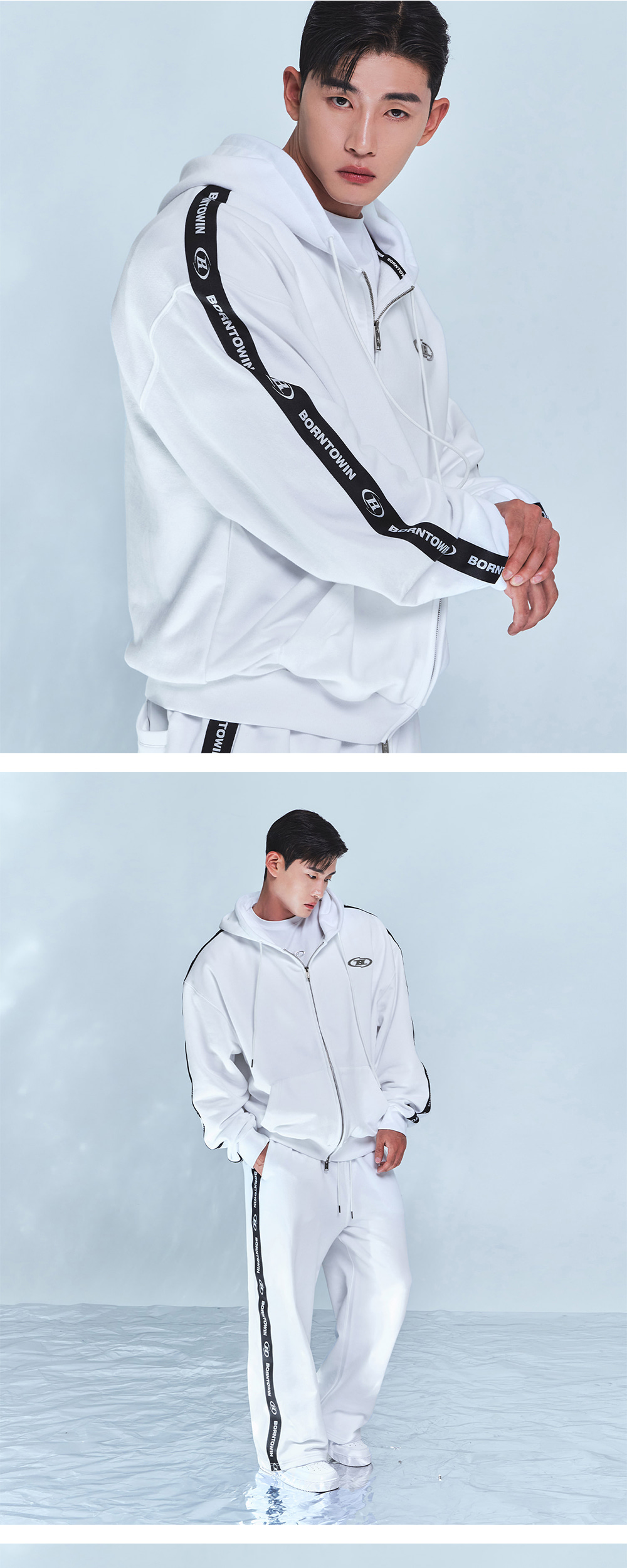 본투윈 빅 크롬 B 블랙 라인 집업 후드 화이트