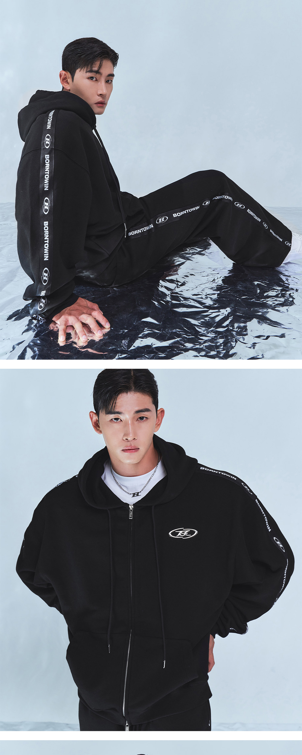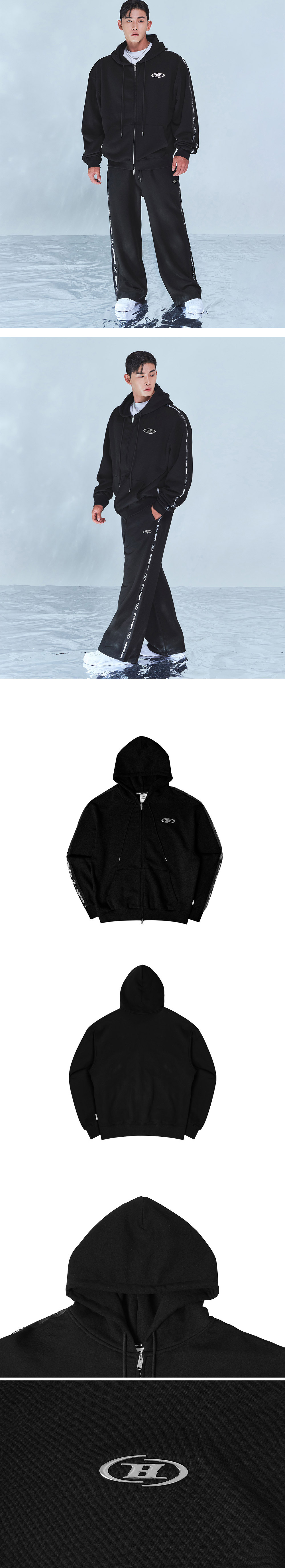 본투윈 빅 크롬 B 블랙 라인 집업 후드 블랙