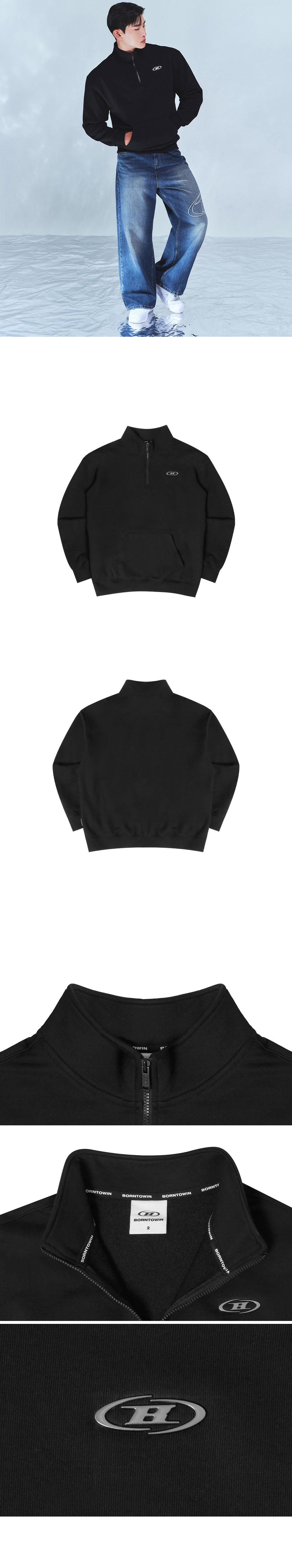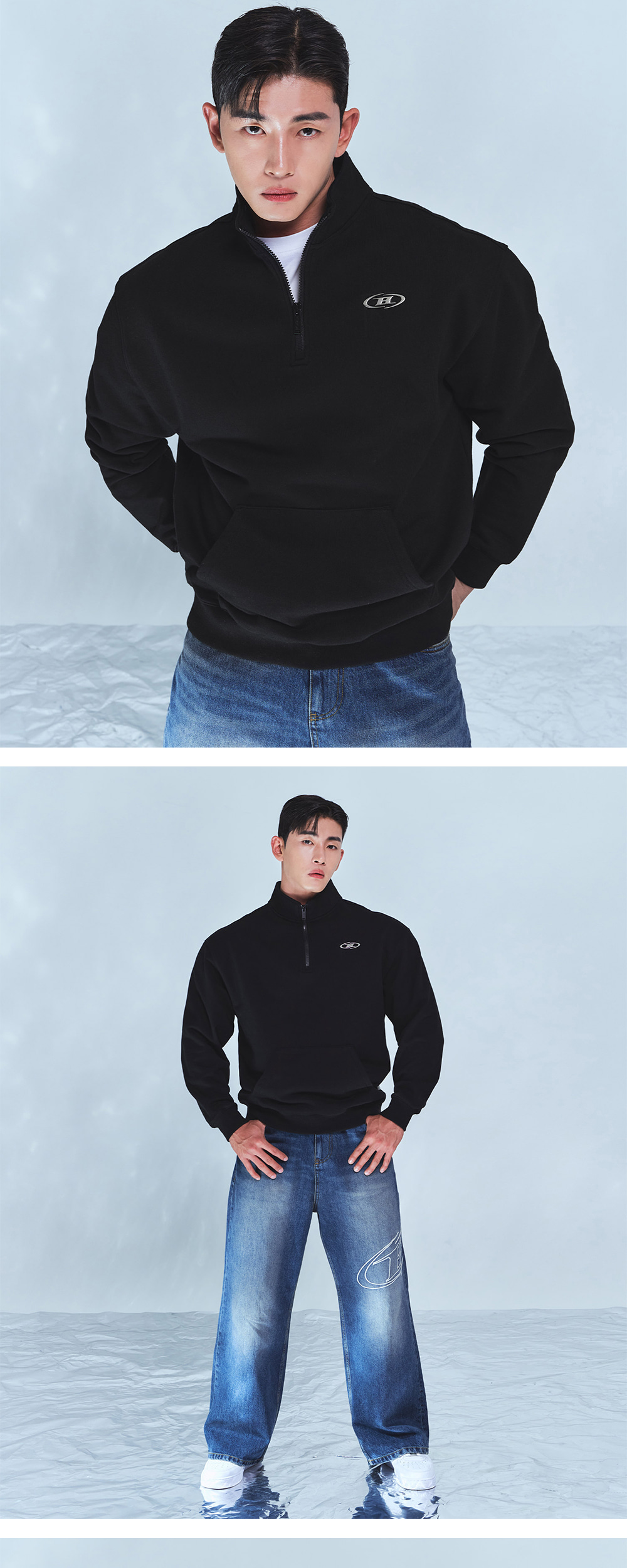 [DETAILS] * 크롬 B 하프집업 스웻셔츠 - 고중량 코튼폴리 헤비테리 원단 - 크롬 B 로고 포인트 - 캥거루 포켓 - 여유로운 실루엣의 오버 사이즈핏 Material : COTTON 70%, POLYESTER 30% Fitting : DJ 3 Size, 183cm, 88kg