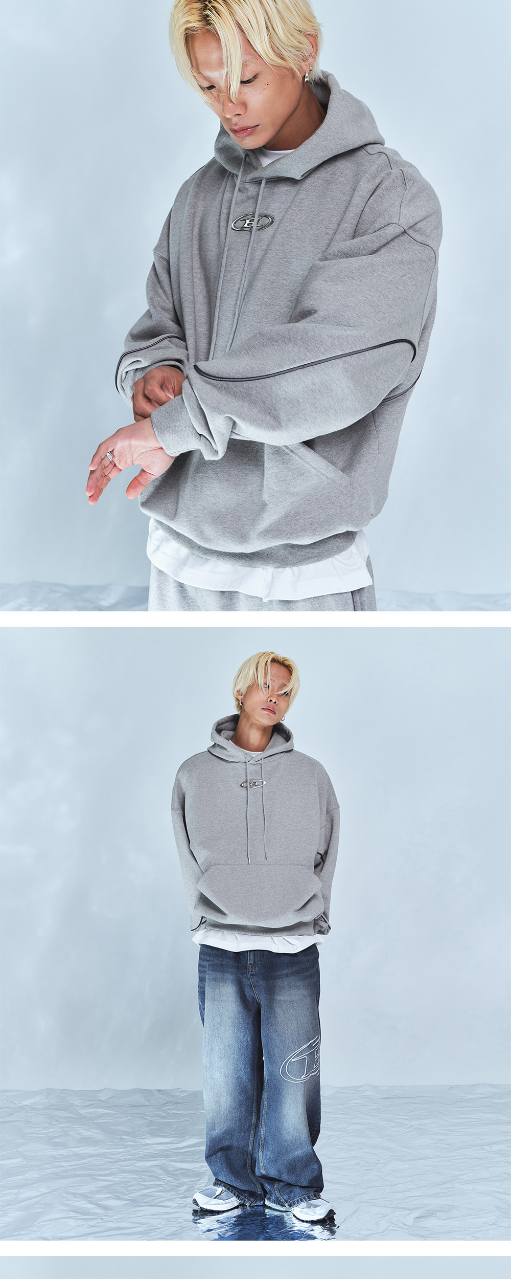본투윈 빅 크롬 리플렉티브 라인 후드 멜란지 그레이
