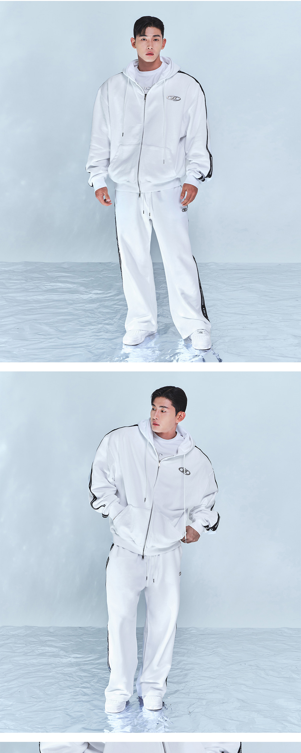 본투윈 크롬 B 블랙 라인 와이드 팬츠 화이트