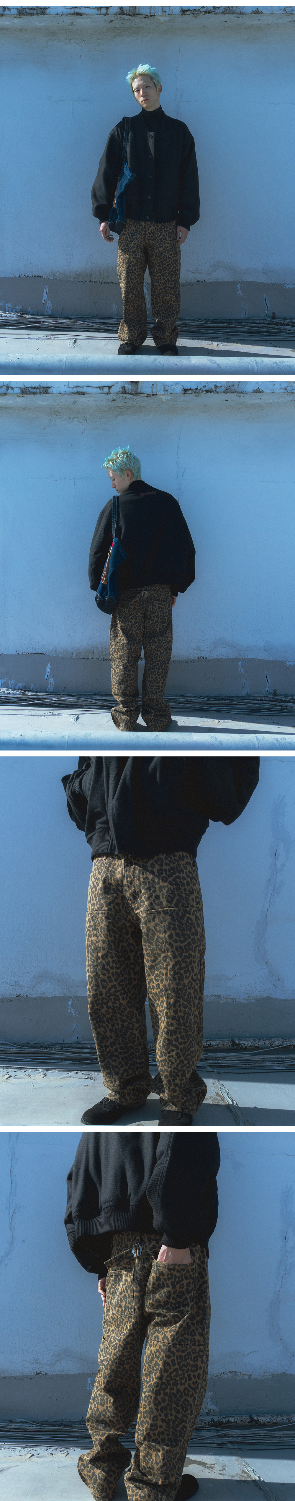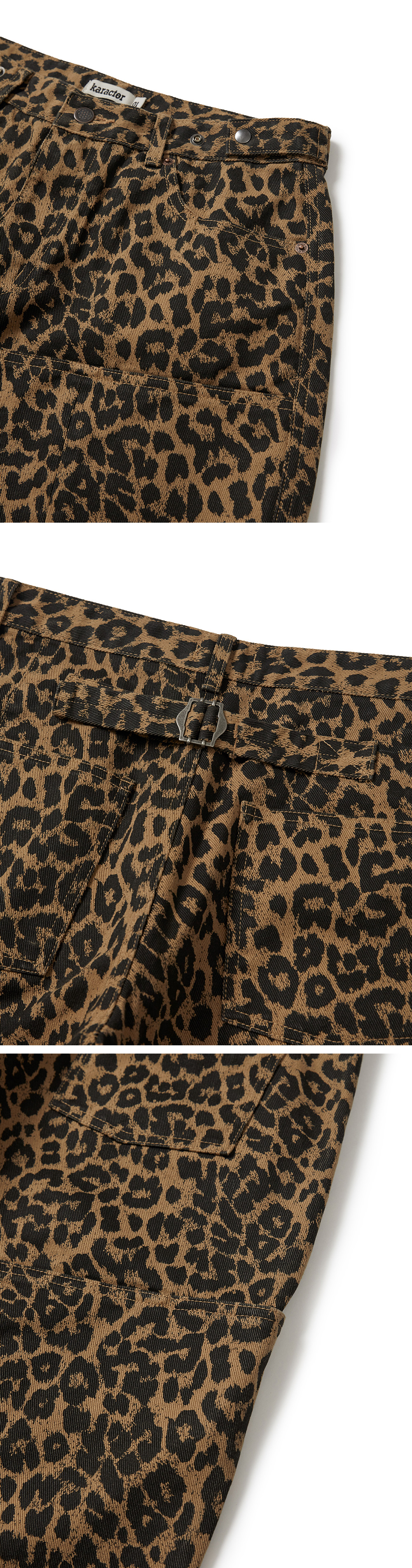 카락터 레오파드 코튼 트윌 팬츠 베이지