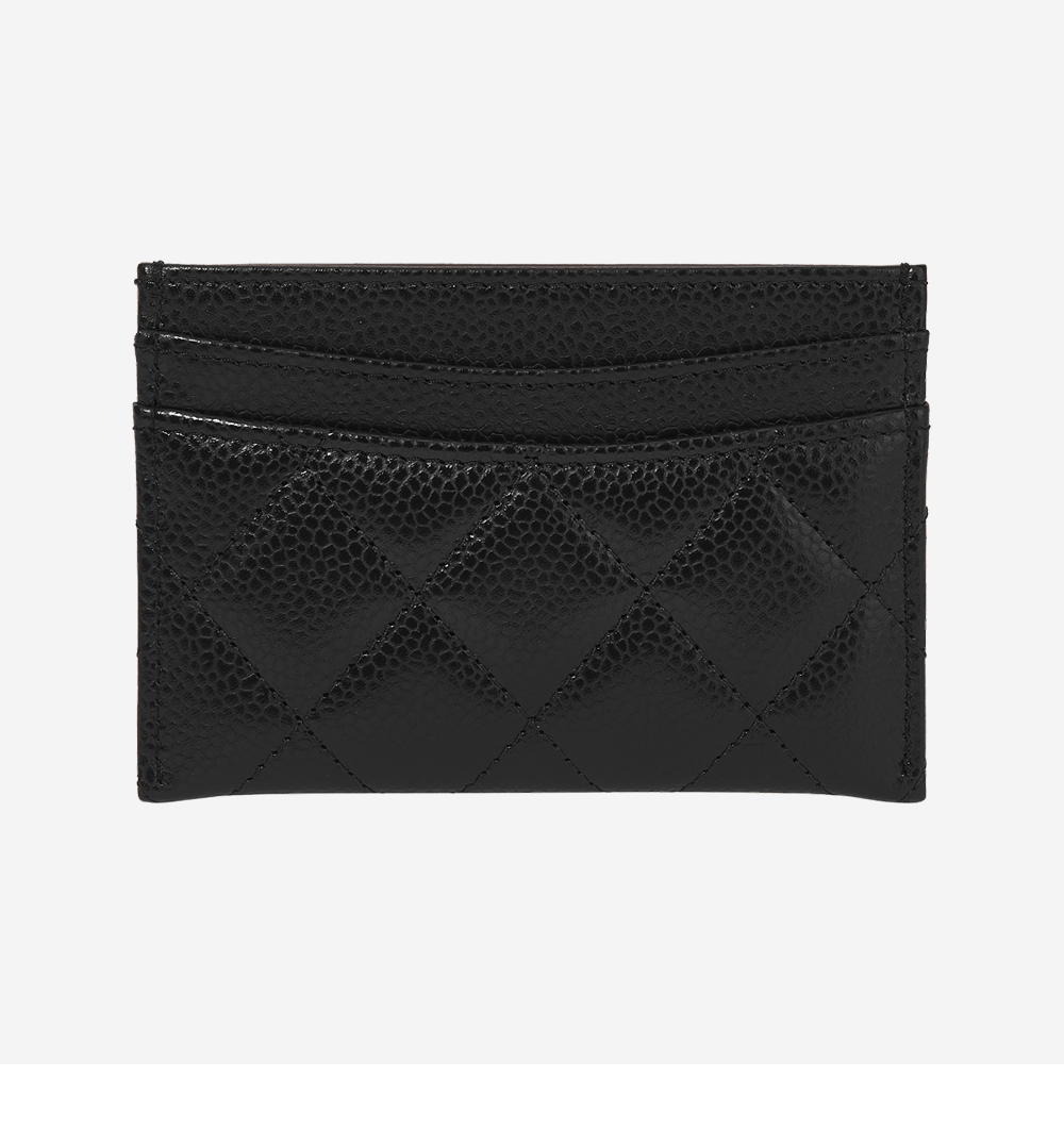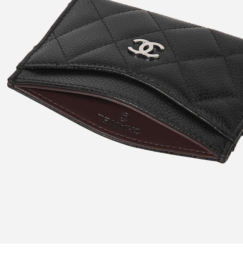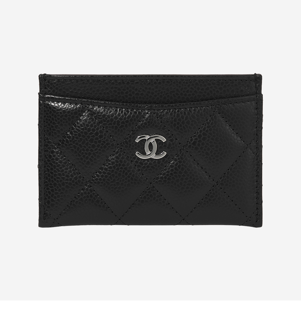 샤넬 클래식 카드 홀더 그레인드 카프스킨 & 실버 메탈 블랙