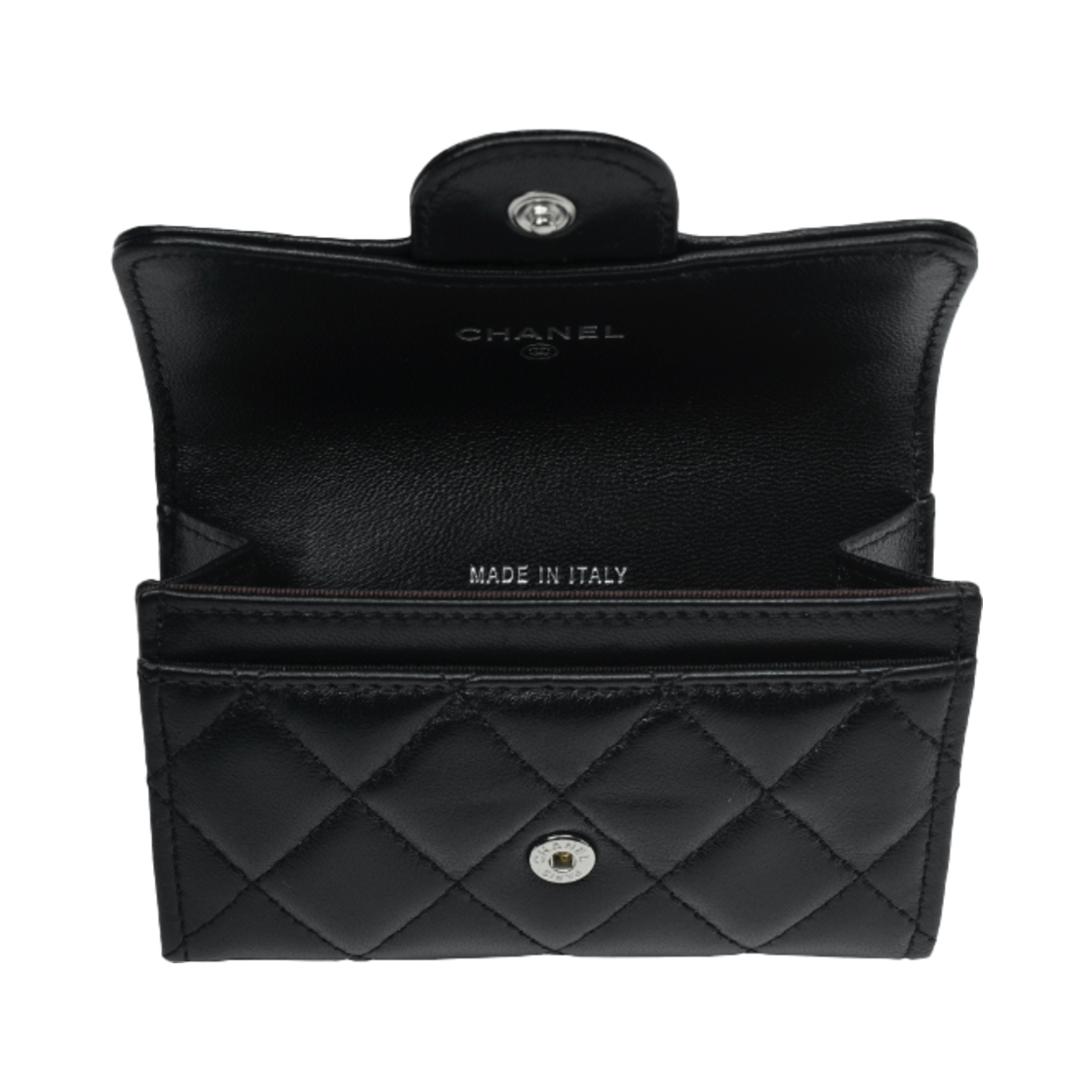 샤넬 클래식 카드 홀더 램스킨 & 실버 메탈 블랙