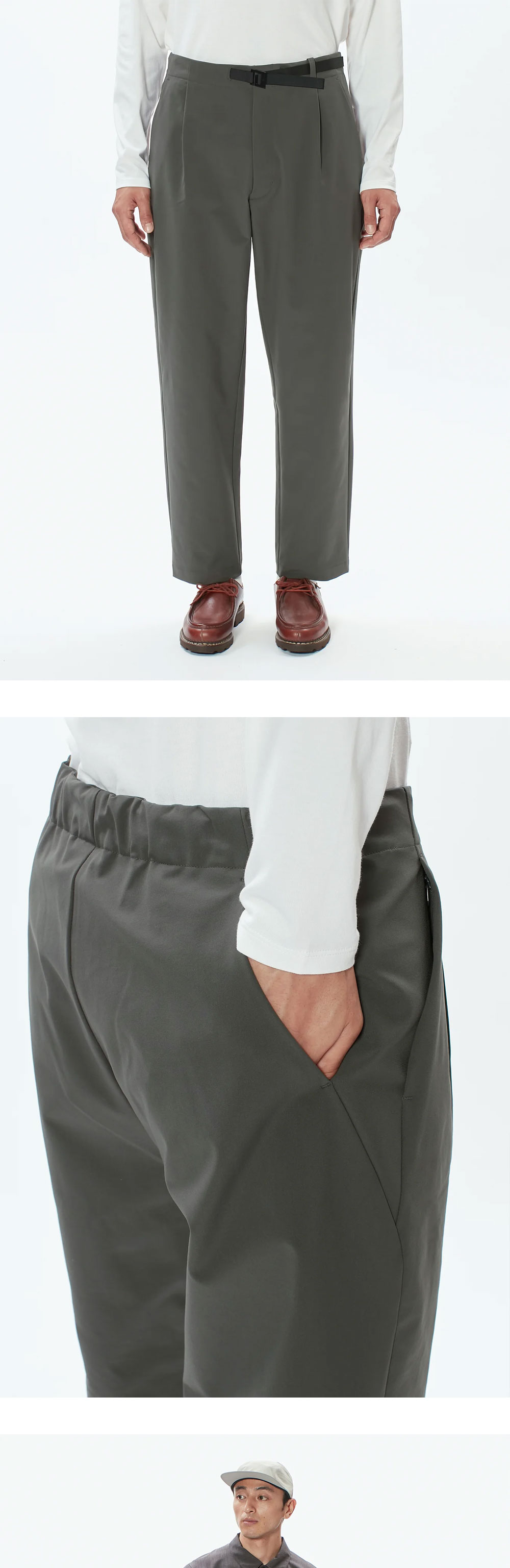 편안하고 실용적인 골드윈의 인기 팬츠 원턱 테이퍼드 스트레치 팬츠 아스팔트 그레이 컬러입니다 - 금속 버클 허리 디테일 - 테이퍼드 형태로 여유럽고 편안한 핏 - 100% 폴리에스터로 만든 우수한 4방향 스트레치 소재 - 모양이 유지되고 주름이 덜 생기는 스트레치 소재 - 폴리우레탄이 없는 스트레치 소재로 인해 소재의 마모와 찢어짐에 대한 높은 저항성 - 방수 코팅 처리 - 오른쪽 내부 보안 주머니 디테일 - 엉덩이 라인을 따라 흐르는 요크의 곡선을 강조하도록 배치된 뒷주머니 - 심플한 디자인에 악센트로도 활용 가능한 대용량 수납 공간