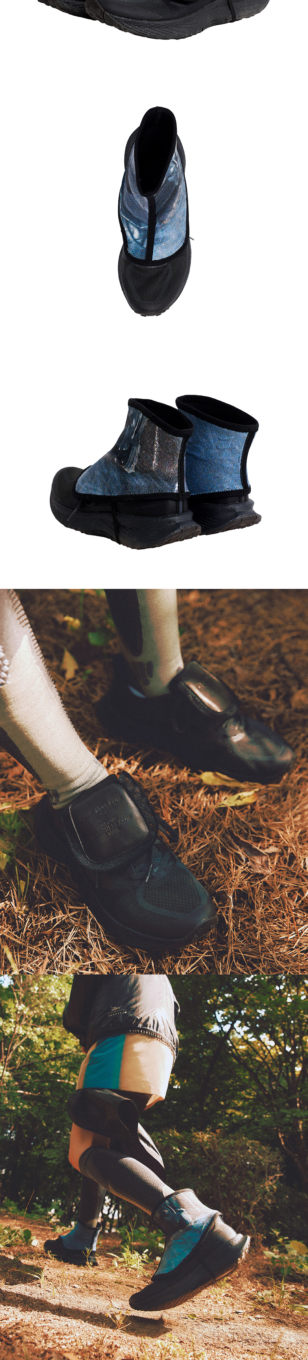 REEBOK x SEEN Sneakers Custom Collaboration "Running Connect" 리복의 러닝 스니커즈 플로트라이드 시리즈에 씬의 코어 디테일을 접목시키는 프로젝트 씬의 코어 디테일중 하나인 Lace를 탈부착 가능한 폴드 오버 텅으로 제작하였습니다. 그리고 트레일 러닝 악세세리중 하나인 게이터(Gaiter)에 포토프린팅을하여 추가 악세사리로 제공됩니다. - Reebok x SEEN Custom sneakers Floatride Energy 6 - Detachable Lace fold-over tongue with velcro - Printing Gaiter accessory