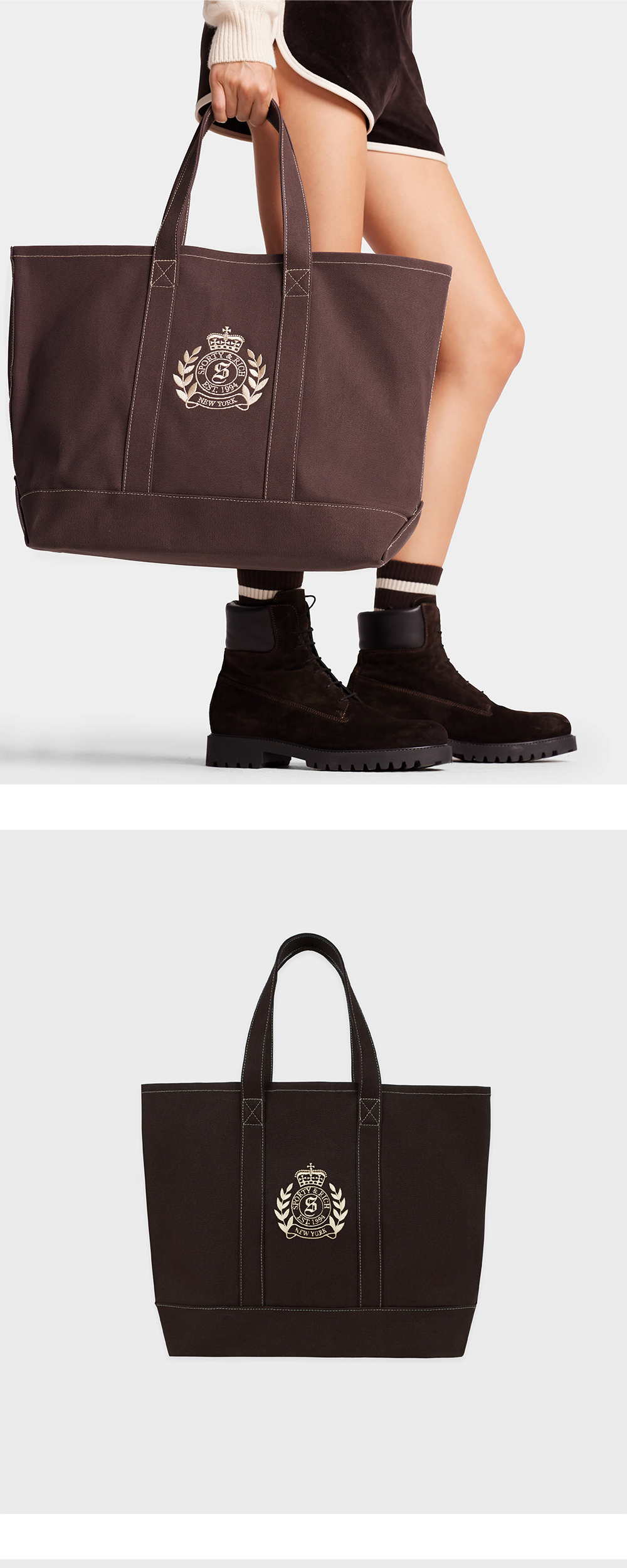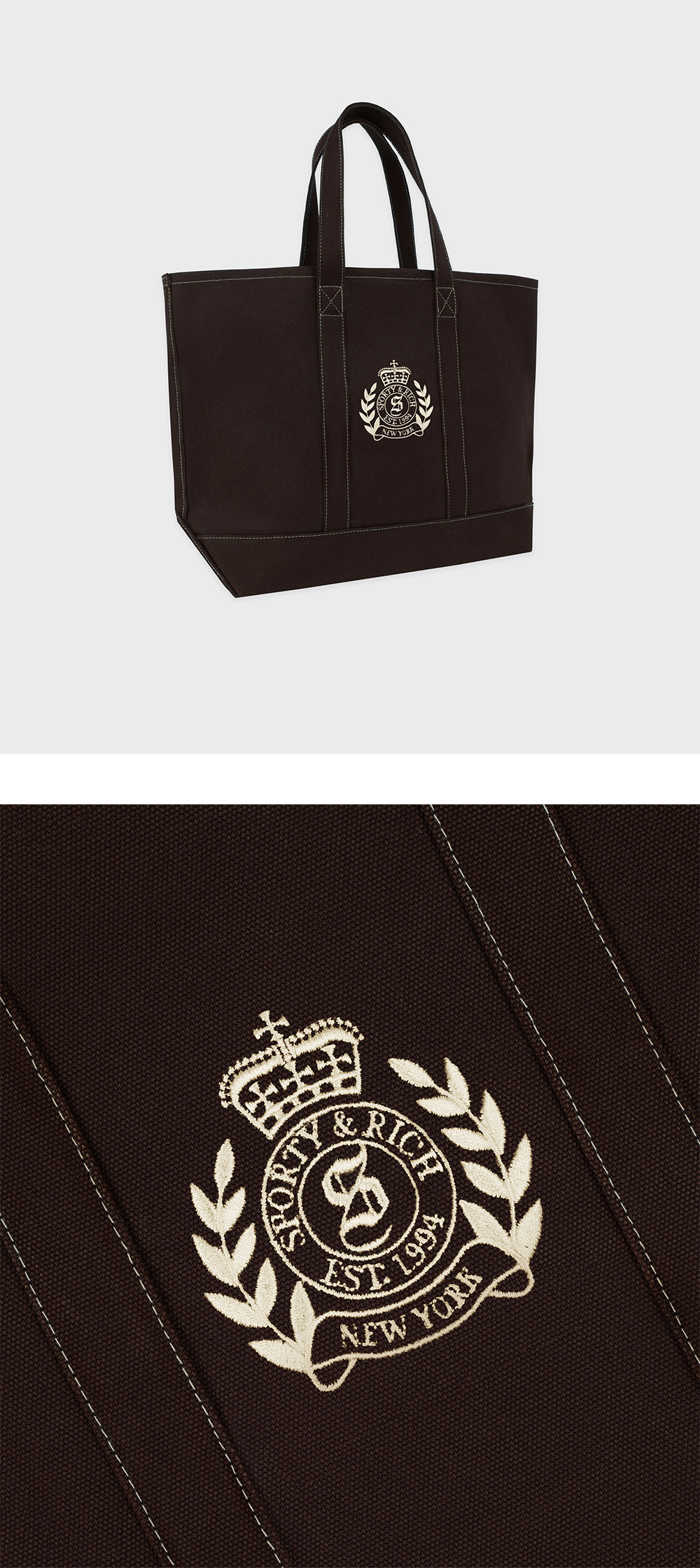스포티 앤 리치 NY 크레스트 토트백 초콜릿 크림 - 24FW