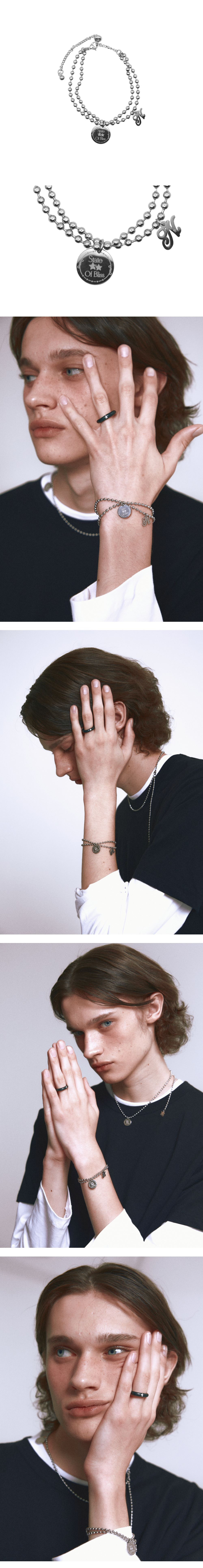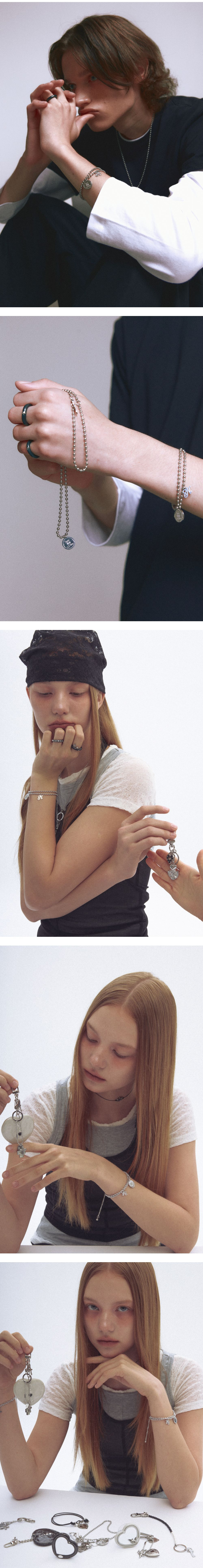 심플하지만 펜던트들과 함께 레이어링된 볼체인이 포인트인 팔찌입니다. 길이 조절이 가능하며, 이동 가능한 볼장식을 추가해 착용에 용이하도록 제작했습니다. 또한 nff만의 펜던트를 통해 브랜드 무드를 표현합니다.