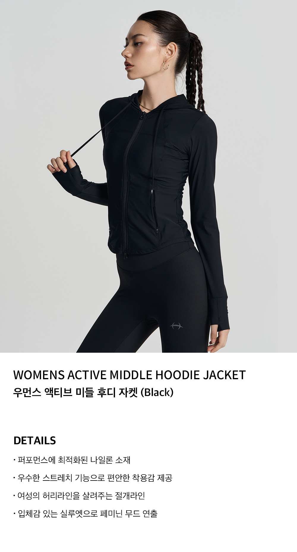에이치덱스 우먼스 액티브 미들 후디 자켓 블랙