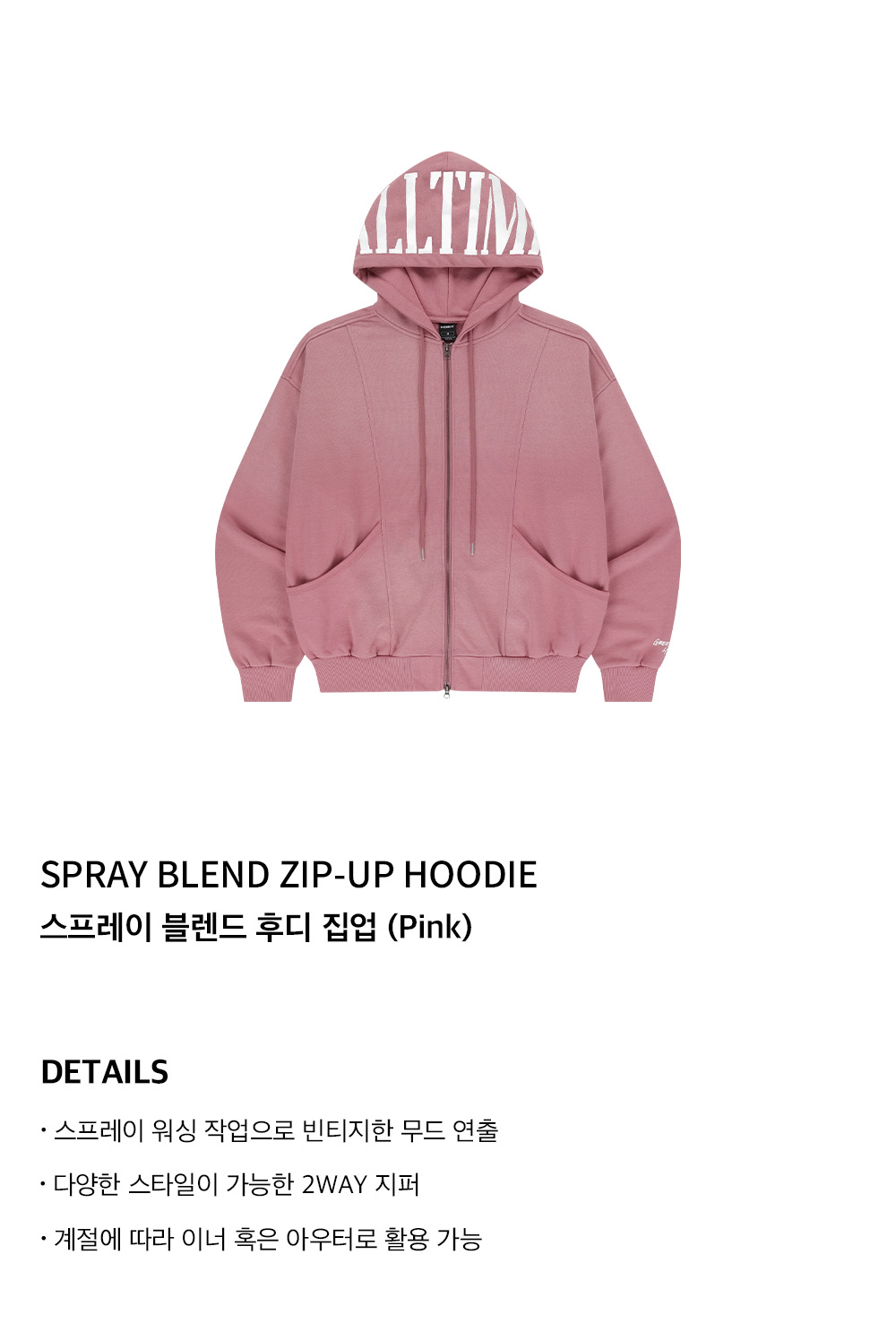 에이치덱스 스프레이 블렌드 후디 집업 핑크