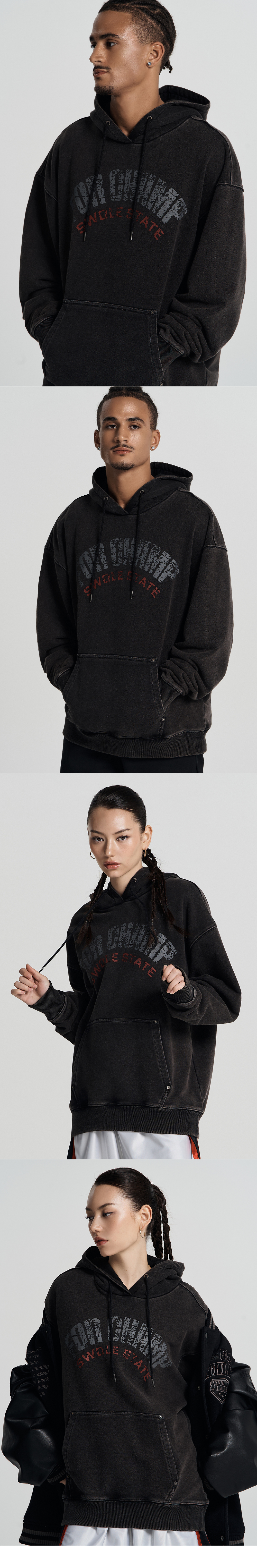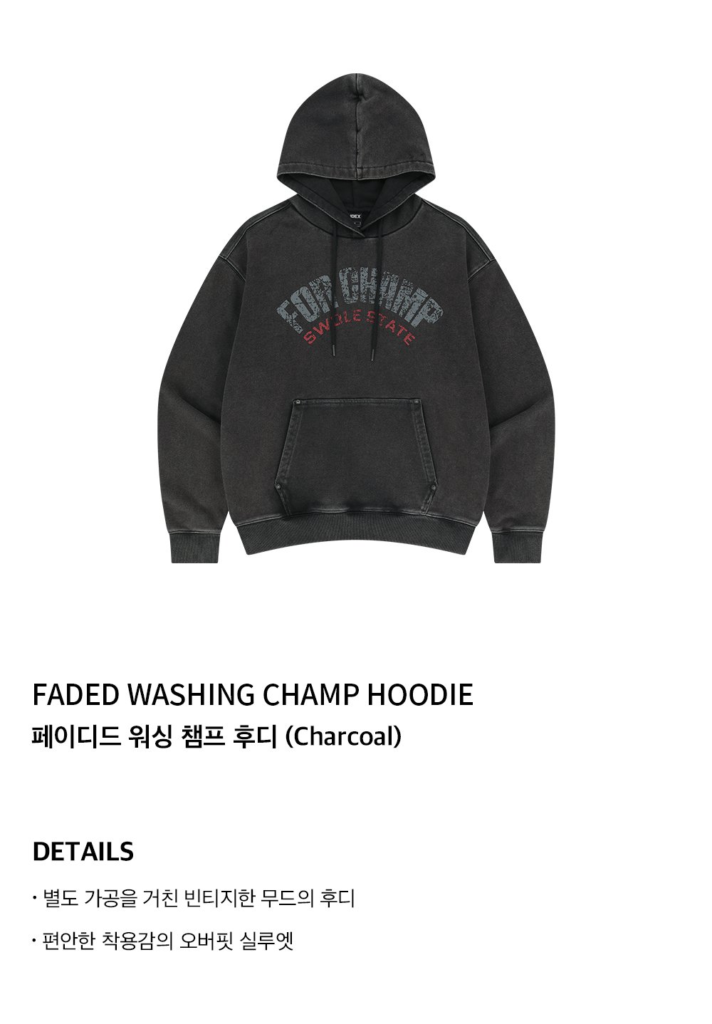 에이치덱스 페이디드 워싱 챔프 후디 차콜