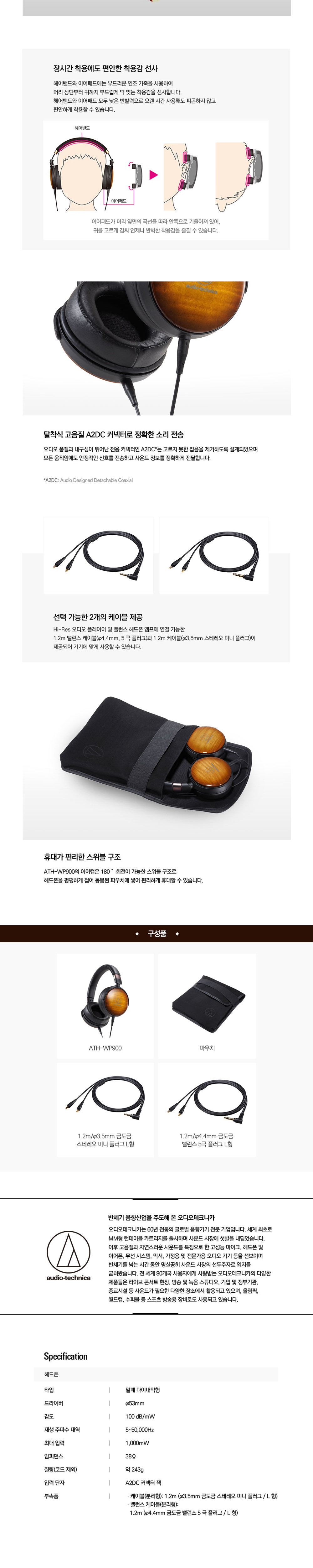 오디오테크니카 ATH-WP900 단풍나무 원목 하우징 하이레졸루션 헤드폰