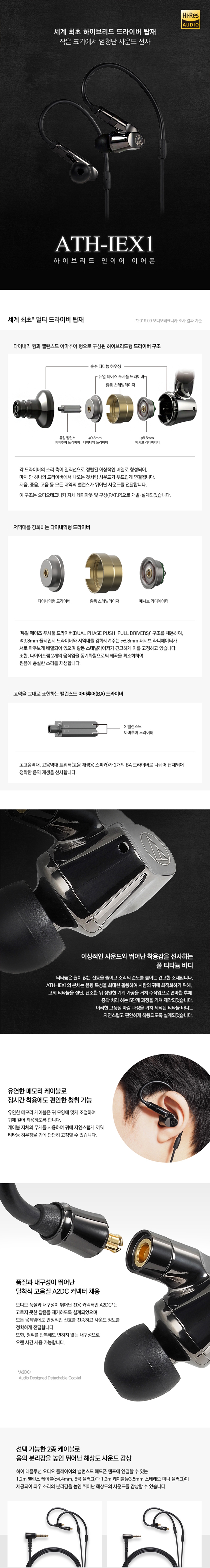 오디오테크니카 ATH-IEX1 하이브리드 드라이버 티타늄 하이레졸루션 이어폰