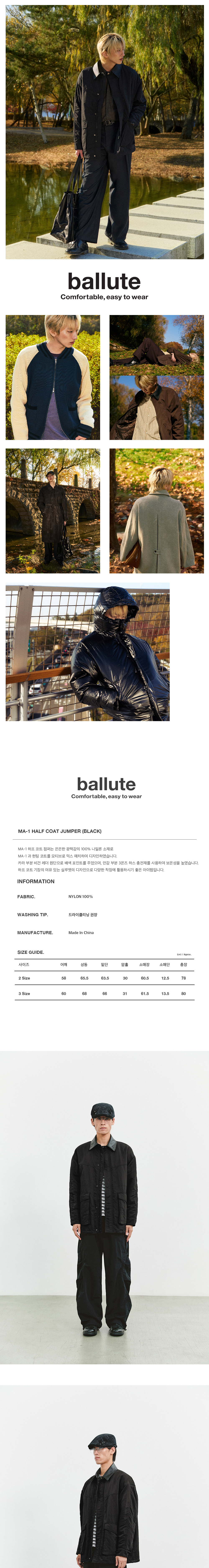 발루트 MA-1 하프 코트 점퍼 블랙