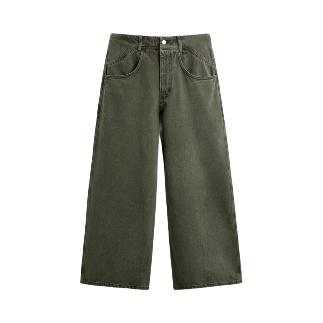 자라 x 나누시카 와이드 레그 진 다크 카키