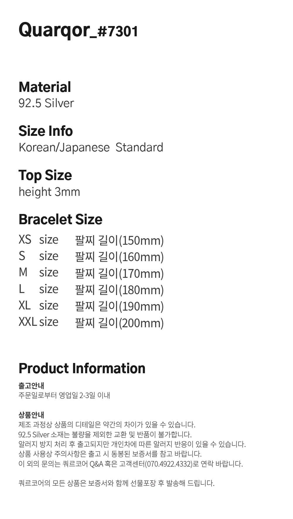 쿼르코어 #7301 실버92.5 브레이슬릿