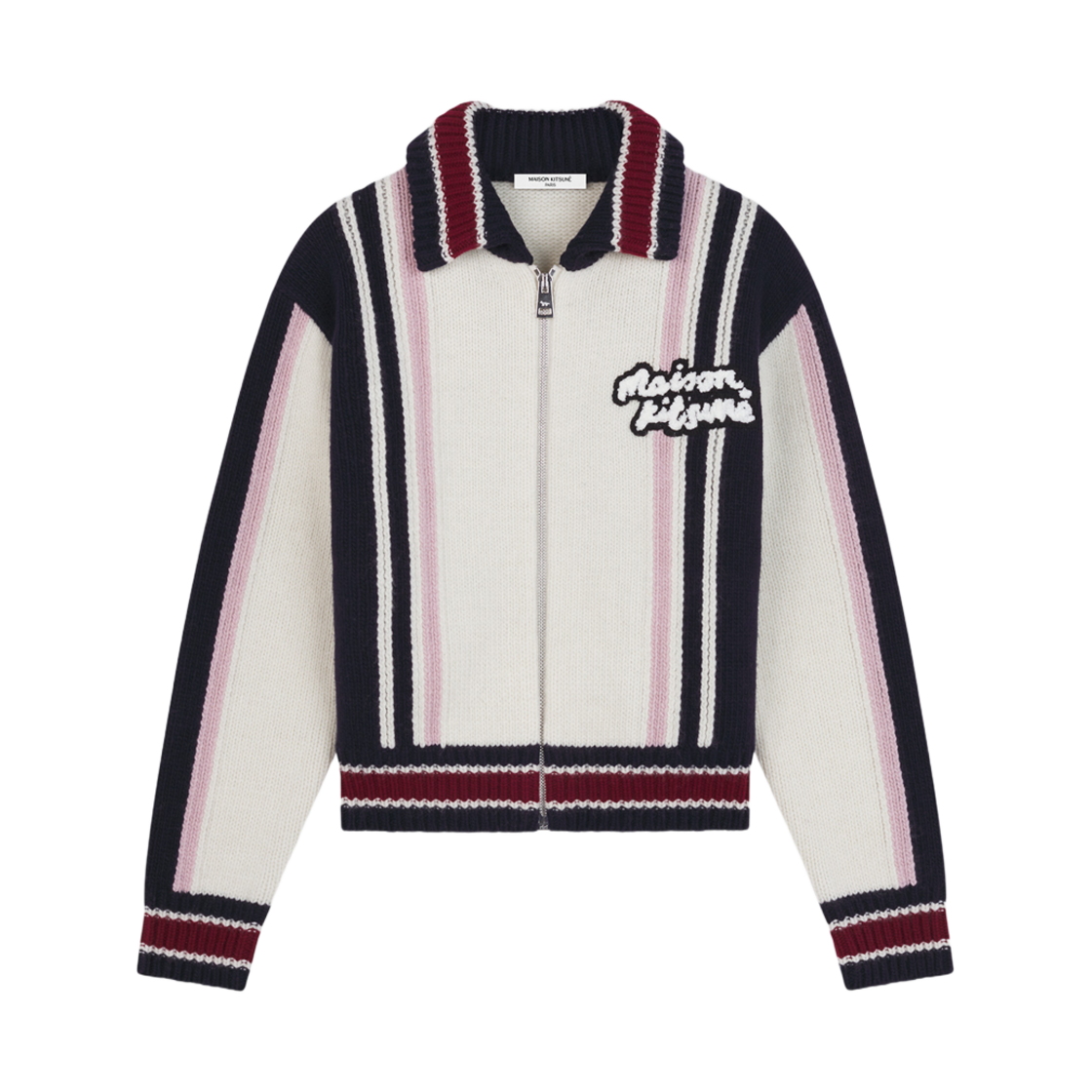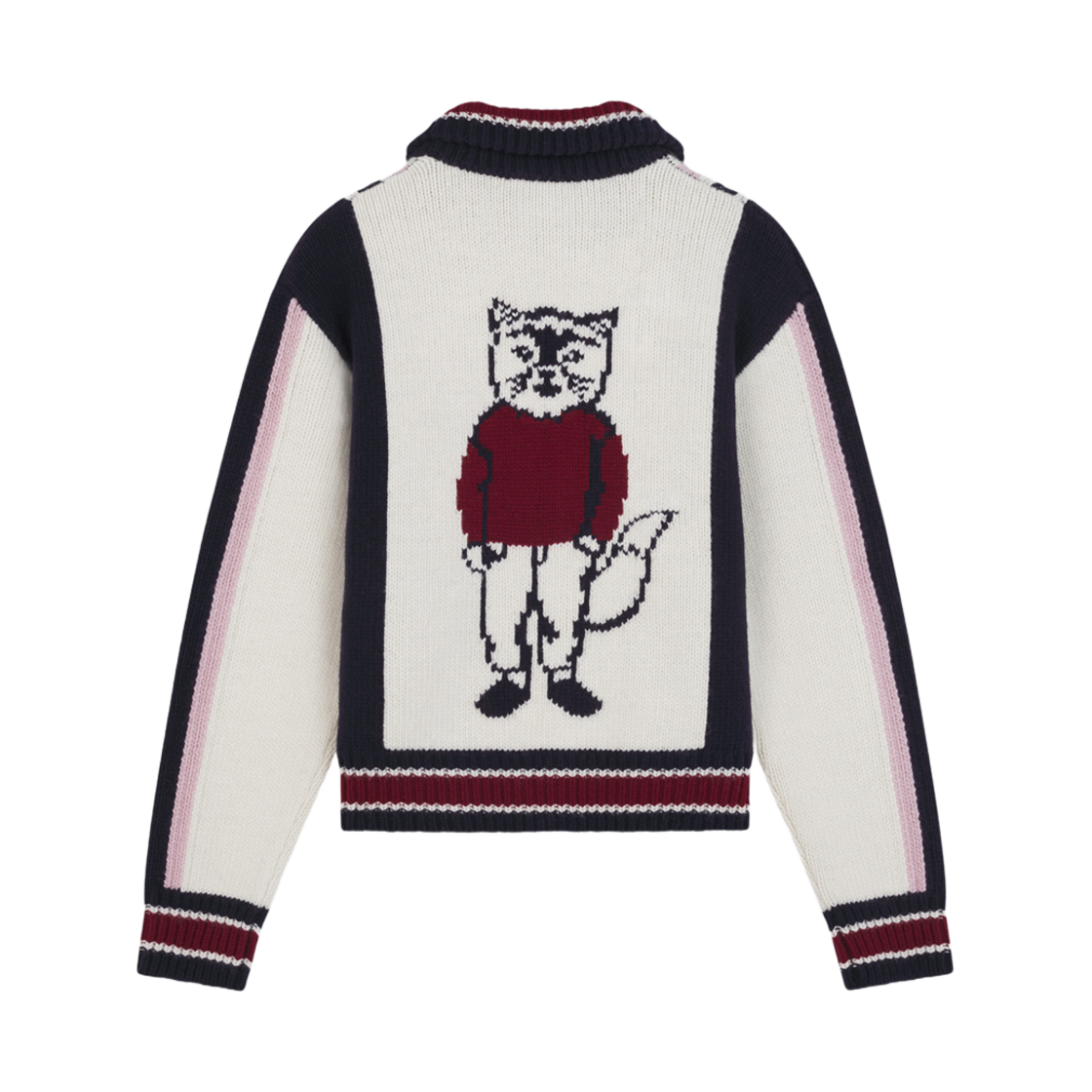 (W) Maison Kitsune Knitted College Blouson Ecru Ink Blue Winterberry