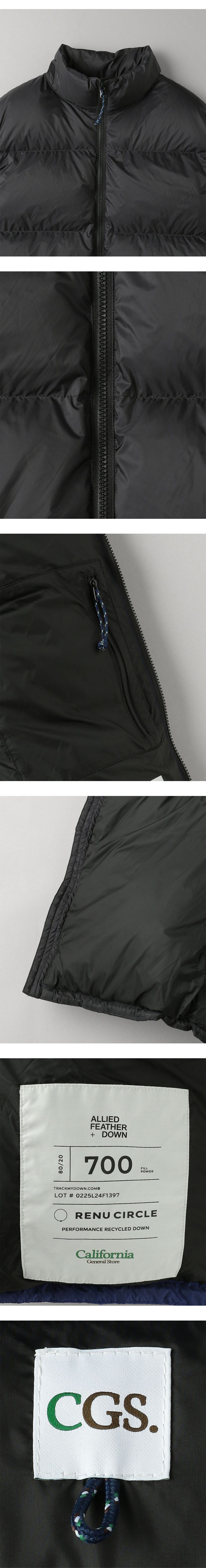 미니멀한 디자인에 실용적인 디테일을 더한 데일리 아이템, 캘리포니아 제너럴 스토어의 다운 베스트입니다. - 오버사이즈 핏 - 리사이클 나일론 혼방 립스탑 원단 - ALLIED사의 리사이클 다운 충전재 - 전면 투웨이 지퍼 클로징 - CGS 오리지널 컬러의 지퍼 끈 디테일 - 후면 로고 실리콘 패치 디테일 - 내부 지퍼 포켓 - 밑단 드로우스트링으로 실루엣 조절 가능