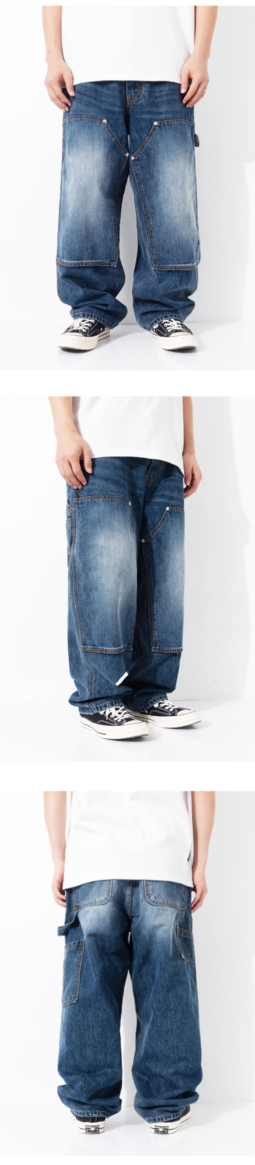 전통적인 방식의 더블니 카펜터 워크 팬츠 디자인을 채택하였으며 보다 와이드하고 자연스럽게 떨어지는 테이퍼드 실루엣을 가지고 있습니다.