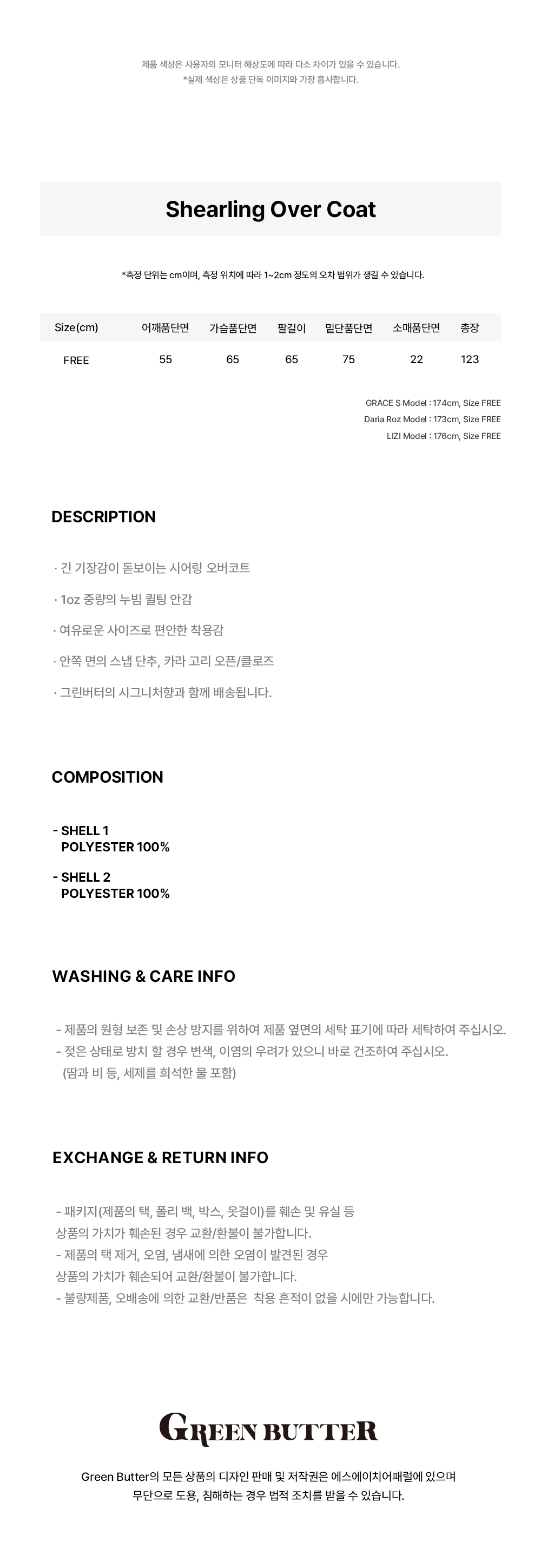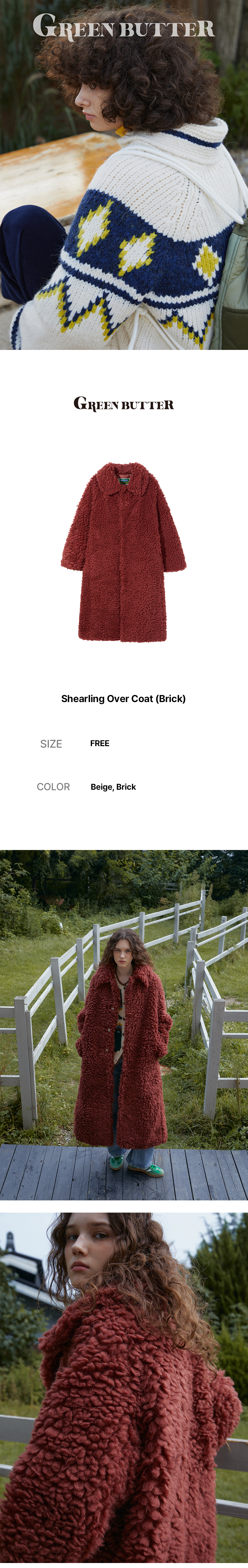 그린버터 시어링 오버 코트 브릭