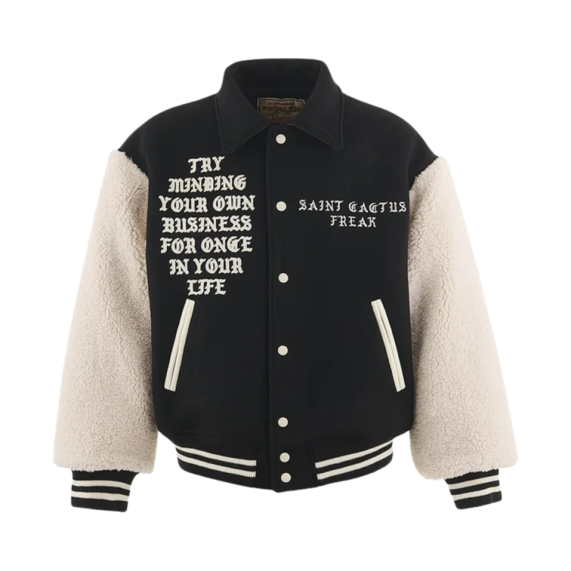 Saint Mxxxxxx x Cactus Plant Flea Market Leave Me Alone Varsity Jacket Black - 24AW