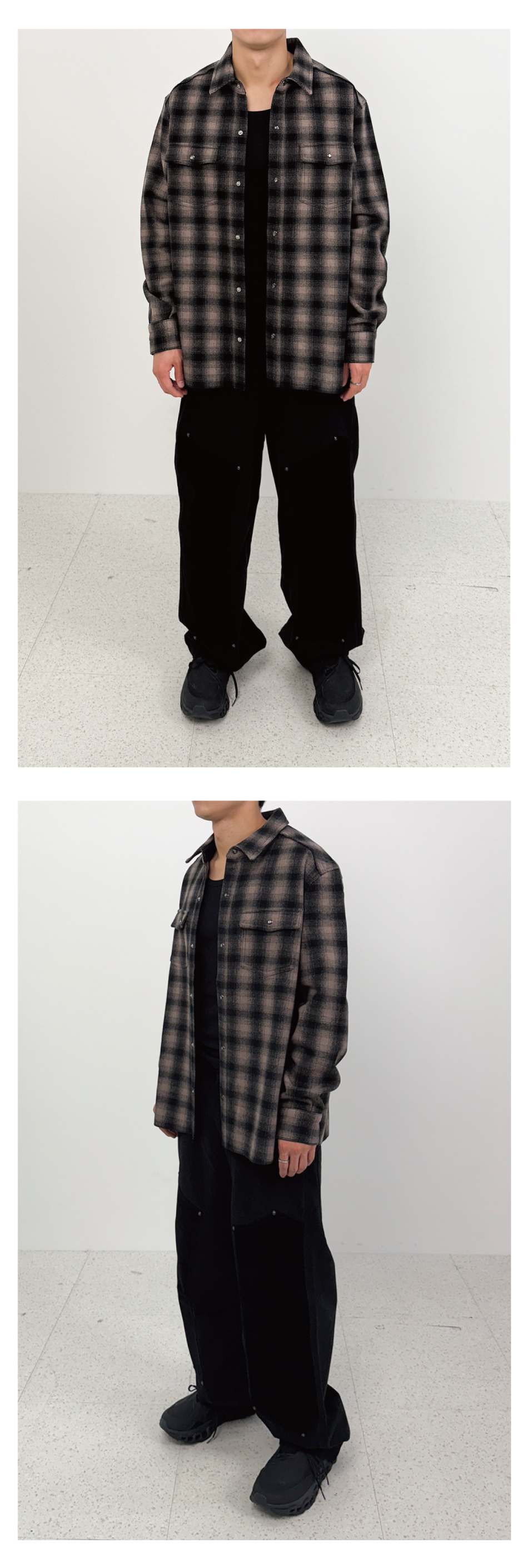 이티씨이 헤비 울 플란넬 체크 자켓 베이지
