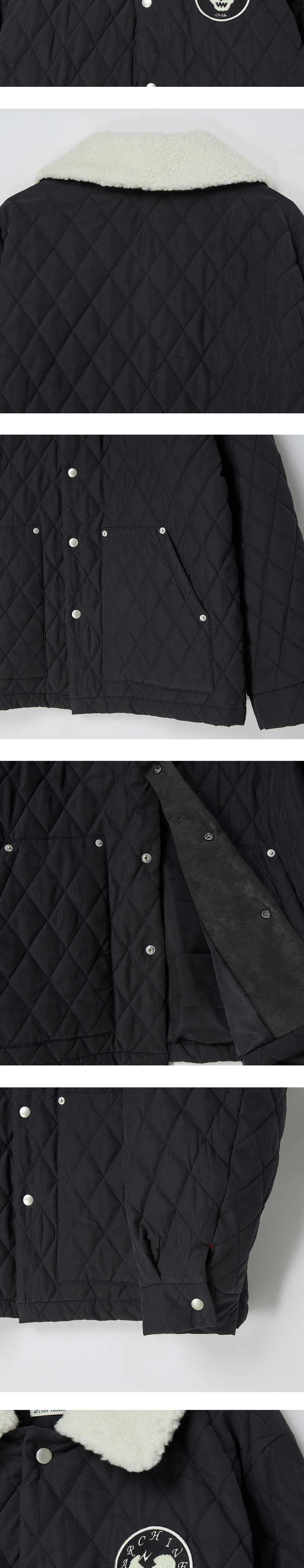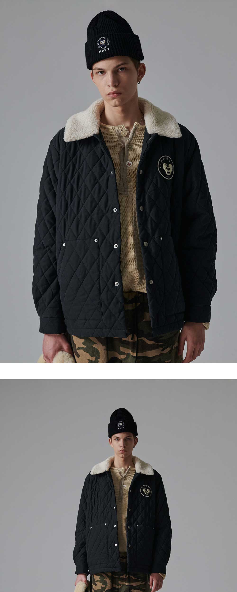 ㆍ피치가공을 더한 유니크한 퀼팅 원단으로 제작 ㆍ세미 오버핏으로 자연스럽고 클래식한 실루엣 연출 ㆍ빈티지 밀리터리 와팬에서 영감을 얻은 패치 디테일 ㆍ4온스의 프리미엄 하스 솜 사용 ㆍ울 블렌드 양털 카라 사용 ㆍ안쪽에 비건 레더 덧댐 디테일 ㆍ내구성과 터치감이 우수한 큐프릭 원단 사용 ㆍ소매 핸드메이드 배색 스티치 ㆍYKK 유니온 메이드 부자재 사용 ㆍ남녀공용 착용 ㆍ여성분들은 M사이즈 착용 권장