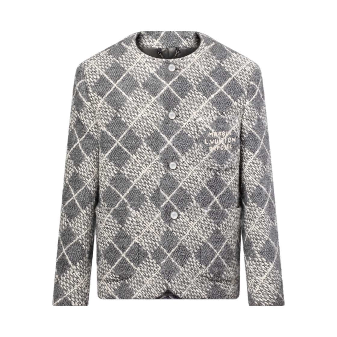 Louis Vuitton Chic Collarless Wool Jacket Pearl Gray