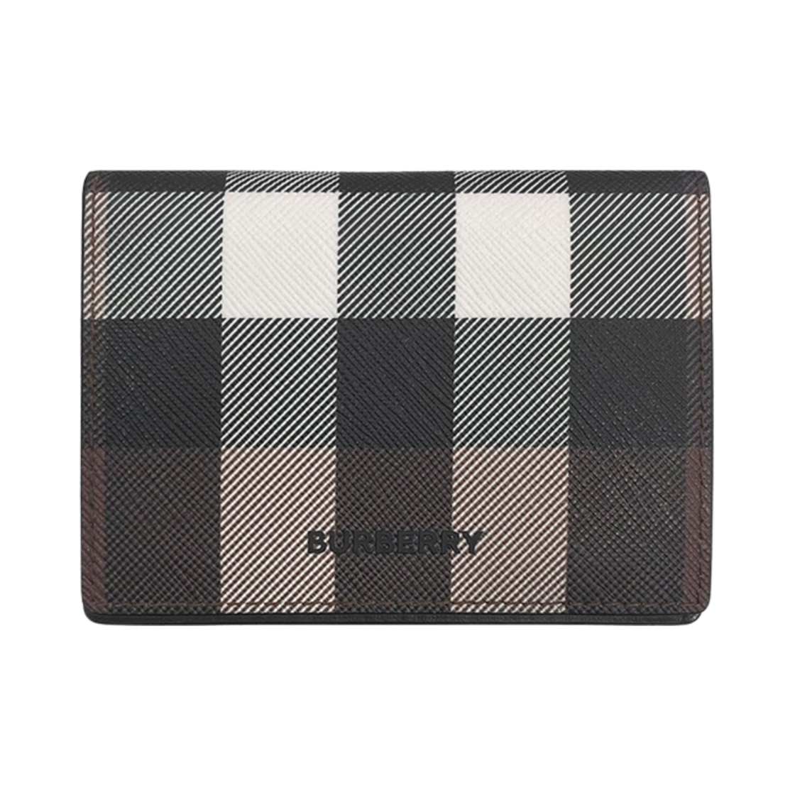 Burberry Check Leather Folding Card Case Dark Birch Brown