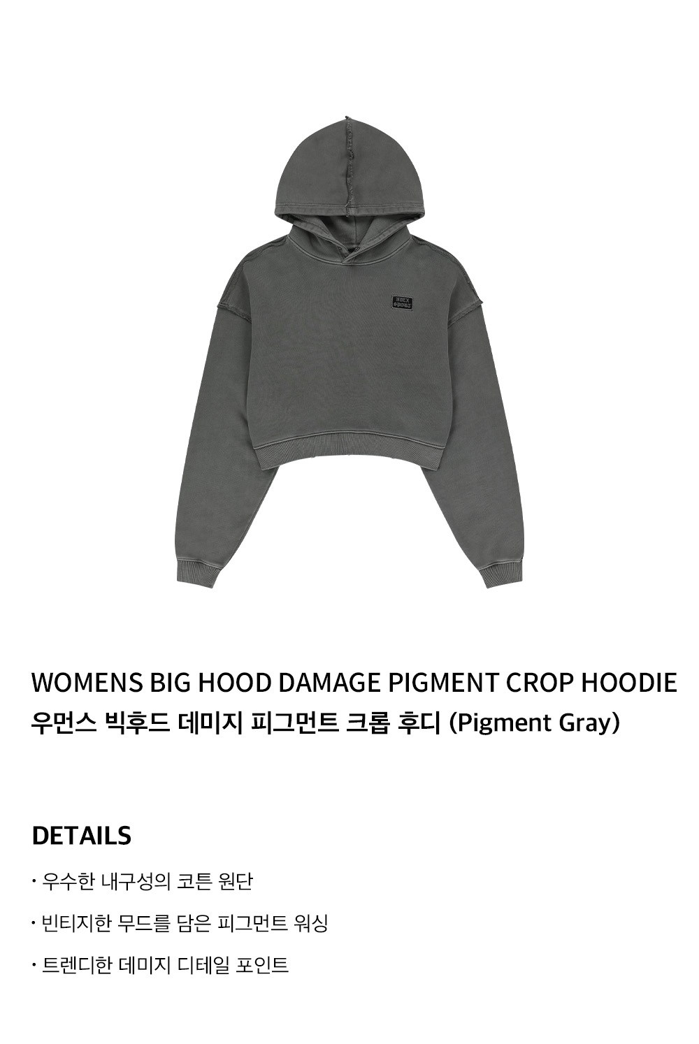 에이치덱스 우먼스 빅후드 데미지 피그먼트 크롭 후디 피그먼트 그레이