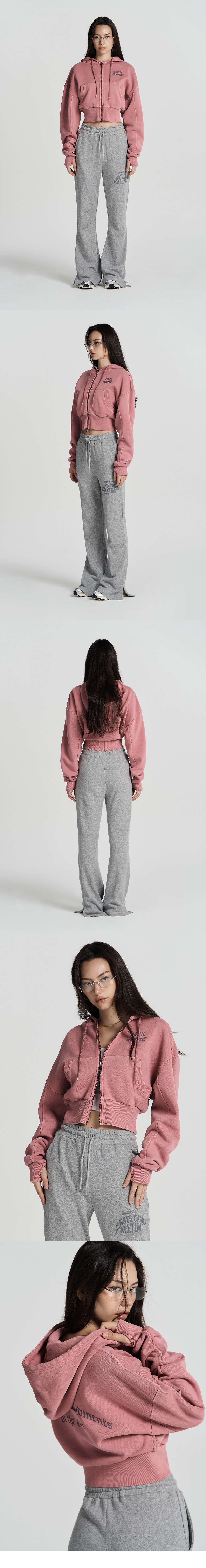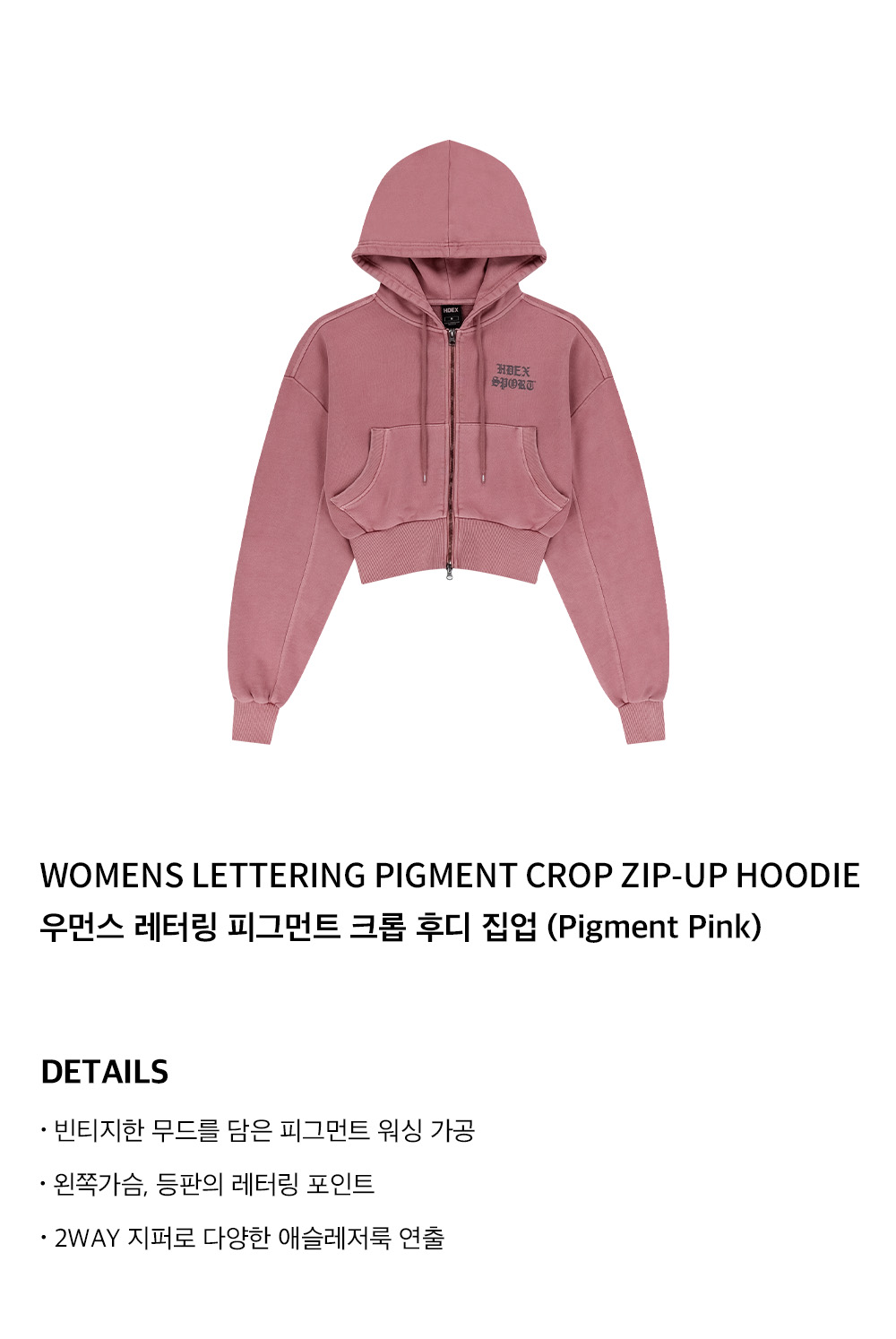 에이치덱스 우먼스 레터링 피그먼트 크롭 후디 집업 피그먼트 핑크