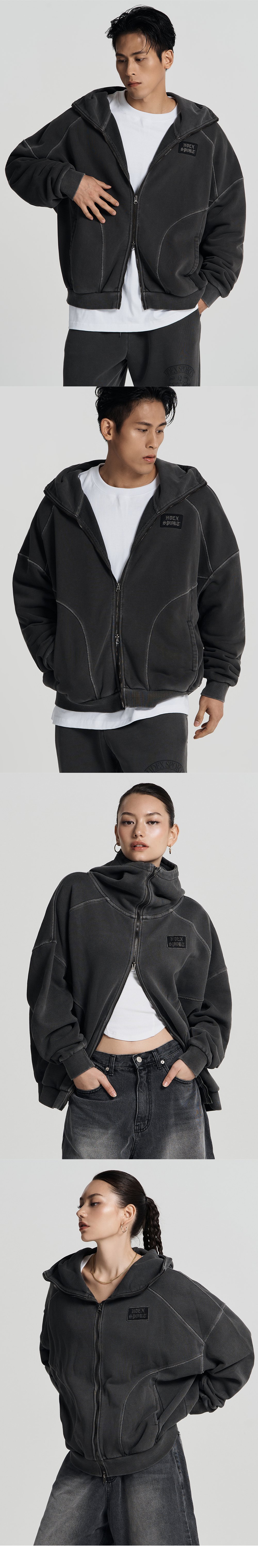 에이치덱스 피그먼트 하이넥 후디 집업 피그먼트 차콜