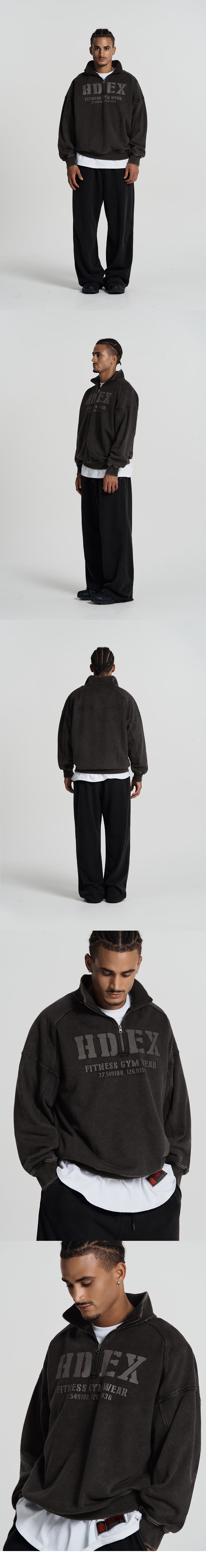 HDEX Faded Washing Core Half Zip-up Sweat Shirt Black