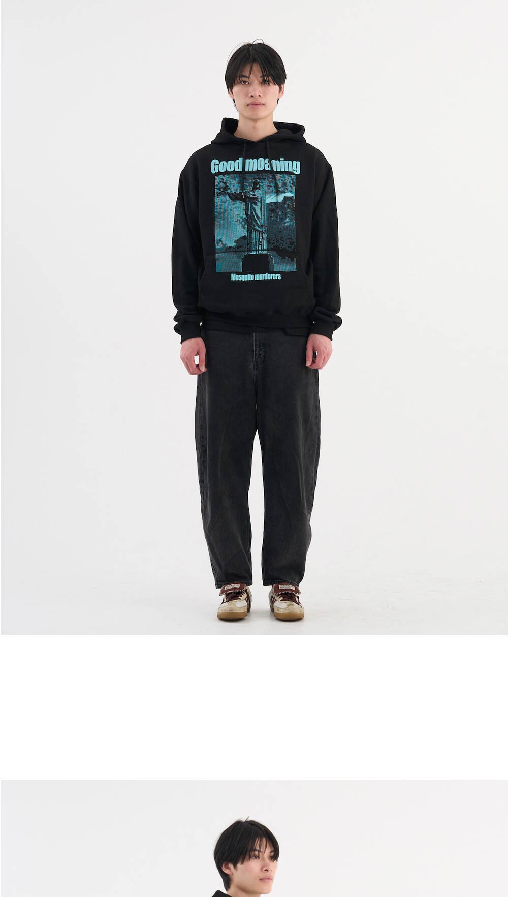 189cm(6’2”) / 75kg(165lb) WEARS SIZE 2 - Cotton 50% Polyester 50% 헤비원단으로 탄탄하고 부드러운 텍스처 - 갈라삼봉 봉제법으로 내구성이 우수하며 완성도 높은 실루엣 - 넓고 두꺼운 밴딩을 이용한 소매 및 끝단 시보리 처리 - 덤블워싱, 텐타 가공을 거쳐 오랜시간 착용 및 세탁시에도 옷의 변형을 최소화 - 벗겨지거나 바래지 않는 선명한 프린팅 Mosquito murderers의 모든 의류는 한땀 한땀 사람의 손으로 탄생됩니다.