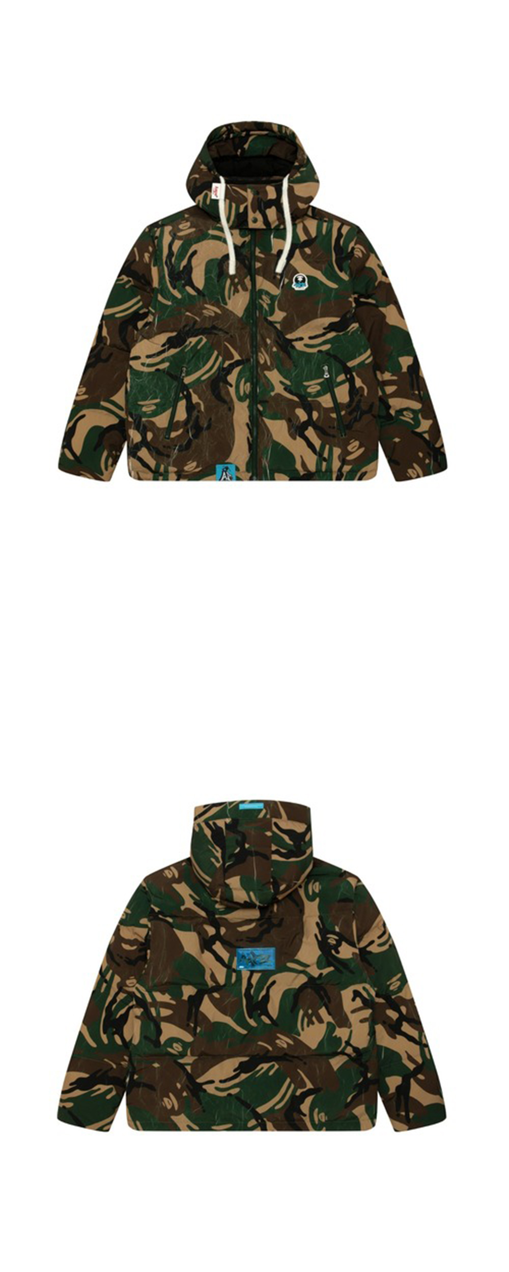 오버한 실루엣에 더해진 시그니처 카모 패턴이 매력적인 에이프 29.5인치 메인 다운 자켓입니다. - 워싱 처리된 에이프 카모 패턴 원단 - 오버한 실루엣 - 탈부착 가능한 후드 - 충전재: 덕 다운 85%, 깃털 15% - 전면 러버 로고 패치 디테일 - 로고를 변형한 지퍼 손잡이 디테일