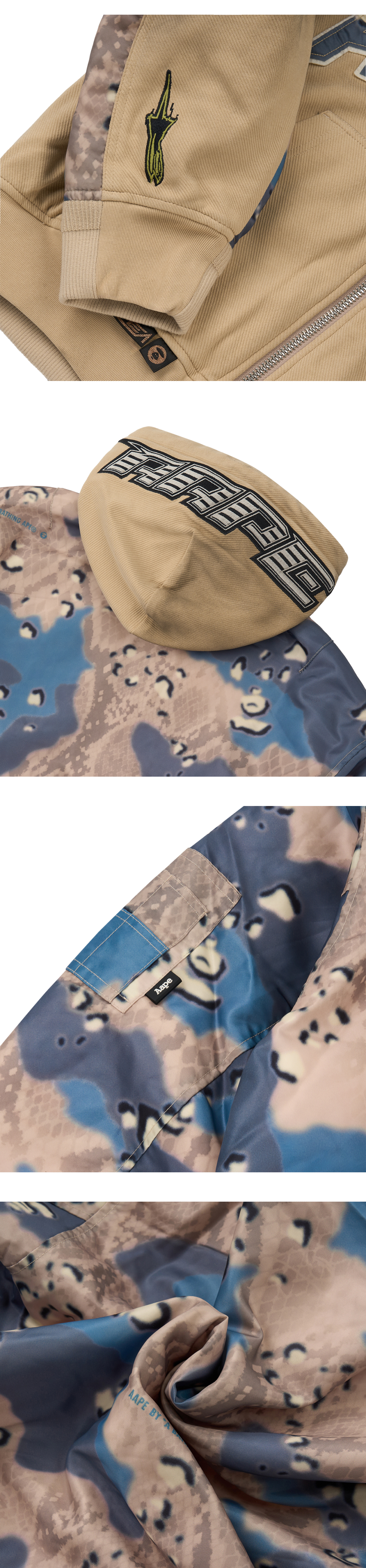 그래픽 포인트로 스트릿 무드를 완성하는 에이프의 메인 자켓 브라운 라이트 베이지입니다. - 뒷면 전체 그래픽 - 후드 스트링에 포인트 그래픽 - 밑단에 로고 포인트 라벨