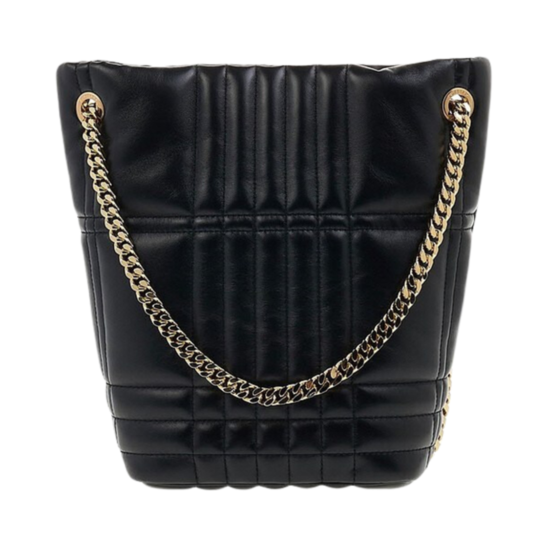 Burberry Quilted Leather Lola Small TB Bucket Bag Black